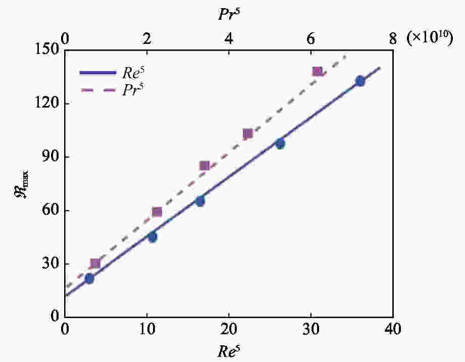 摘要: 利用非模态稳定性方法研究了亚临界情况下的热毛细液层对初始扰动和外加激励的敏感性。通过瞬态增长函数和反馈函数分别反映流场对初始扰动和外加激励的放大。研究结果表明, 小Prandtl数(Pr)下的亚临界流动对初始扰动和外加激励均十分敏感,最大扰动放大与Reynolds 数(Re)的平方近似成正比。在大Pr下,只有回流的亚临界流动存在对外加激励的显著放大,其最大值分别随Re5和Pr5呈线性增长。随着外加激励频率的增大,最优扰动波数逐渐减小。流场和温度场表明输出的扰动速度和温度量级远大于输入的量级,并且与管道流动相比存在明显不同。Abstract: The sensitivity of subcritical thermocapillary liquid layers to initial disturbances and external excitations is investigated by the non-modal stability analysis. The amplifications of initial disturbances and external excitations are measured by the growth function and response function, respectively. Results show that at small Prandtl numbers (Pr), the subcritical flows are sensitive to both initial disturbances and external excitations. The maximum amplifications are approximately proportional to the square of Reynolds number (Re). At large Pr, large amplifications to external excitations are found in the return flow. The maximum response increases linearly with Re5 and Pr5. When the frequency increases, the total wave number of the optimal response decreases. The flow and temperature fields indicate that the magnitudes of output temperature and velocity are far larger than those of input, which is significantly different from the pipe flow.