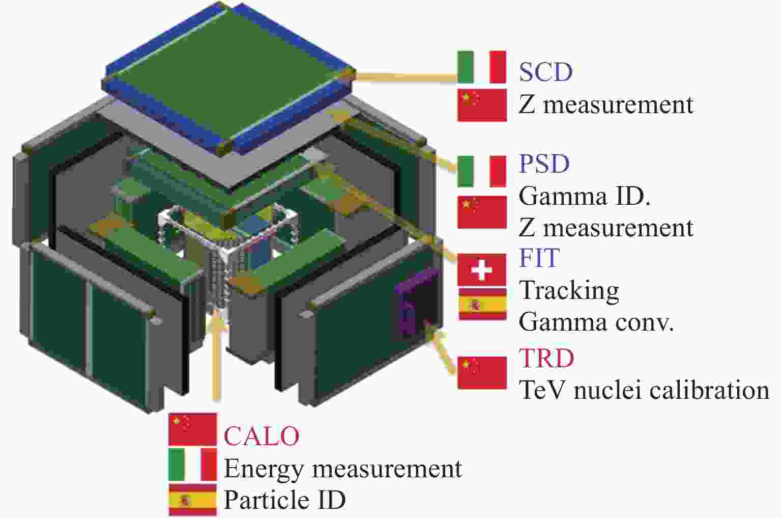 Energy range (e/γ) 10 GeV–100 TeV (e)