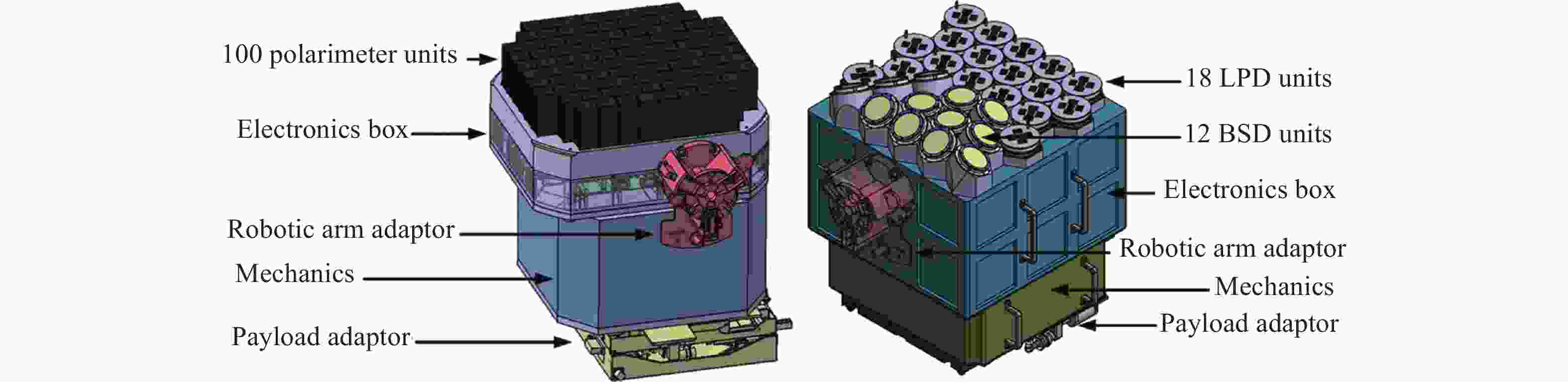 30 keV depending on the gas)10–2000 keV Detection area 2000 cm2 ≥290 cm2 For each module≥40 cm2 Field of view 50% sky 90°×90° 50% sky Energy resolution – ≤25%@5.9 keV ≤18%@59.5 keV Dimensions 590×664×700 mm3 600×600×710 mm3 Table 10. Key parameters of the preliminary payload design