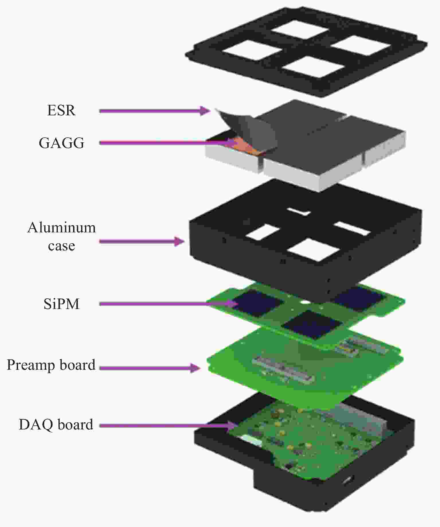Energy range 20 keV–2 MeV Energy resolution 20% FWHM @ 662 keV Field of view 2π Scintillator Ce-doped Gd3(Al,Ga)5O12 (GAGG) SiPM J-60035 manufactured by SensL Payload size 0.5 U (about 10 cm × 10 cm × 5 cm) Table 6. Key parameters of “Lobster-eye X-ray Satellite”