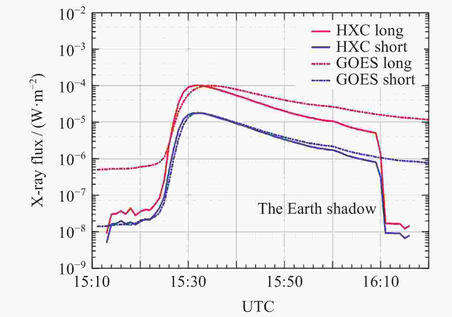 Number Time (UT) GOES/(W·m–2) Tianhe/(W·m–2) Absolute difference/(W·m–2) 1 22 May 2021 21:36 1.49×10–5 1.48×10–5 –1.00×10–7 2 23 May 2021 11:08 1.19×10–5 1.31×10–5 1.20×10–6 3 26 Oct. 2021 15:57 1.02×10–5 1.19×10–5 1.70×10–6 4 28 Oct. 2021 07:40 1.42×10–5 1.40×10–5 –2.00×10–7 5 28 Oct. 2021 15:34 1.00×10–4 1.02×10–4 2.00×10–6 6 29 Oct. 2021 02:42 1.56×10–5 1.77×10–5 2.10×10–6 7 17 Dec. 2021 00:51 1.29×10–5 1.50×10–5 2.10×10–6 8 14 Jan. 2022 02:03 1.84×10–5 1.92×10–5 8.00×10–7 9 20 Jan. 2022 06:01 5.51×10–5 6.50×10–5 9.90×10–6 10 29 Jan. 2022 23:32 1.14×10–5 1.04×10–5 –1.00×10–6 11 2 Mar. 2022 17:39 2.02×10–5 2.13×10–5 1.10×10–6 12 15 Mar. 2022 22:46 1.59×10–5 1.68×10–5 9.00×10–7 13 28 Mar. 2022 11:29 4.06×10–5 6.46×10–5 2.40×10–5 14 29 Mar. 2022 01:11 2.22×10–5 2.09×10–5 –1.30×10–6 15 31 Mar. 2022 18:35 9.67×10–5 1.08×10–4 1.13×10–5 16 2 Apr. 2022 02:56 2.91×10–5 3.59×10–5 6.80×10–6 17 2 Apr. 2022 13:55 3.94×10–5 4.37×10–5 4.30×10–6 18 15 Apr. 2022 11:49 2.21×10–5 1.96×10–5 –2.50×10–6 19 17 Apr. 2022 02:11 1.89×10–5 2.04×10–5 1.50×10–6 20 17 Apr. 2022 03:34 1.16×10–4 1.12×10–4 –4.00×10–6 21 18 Apr. 2022 07:48 1.36×10–5 2.23×10–5 8.70×10–6 22 18 Apr. 2022 10:27 1.19×10–5 1.30×10–5 1.10×10–6 -