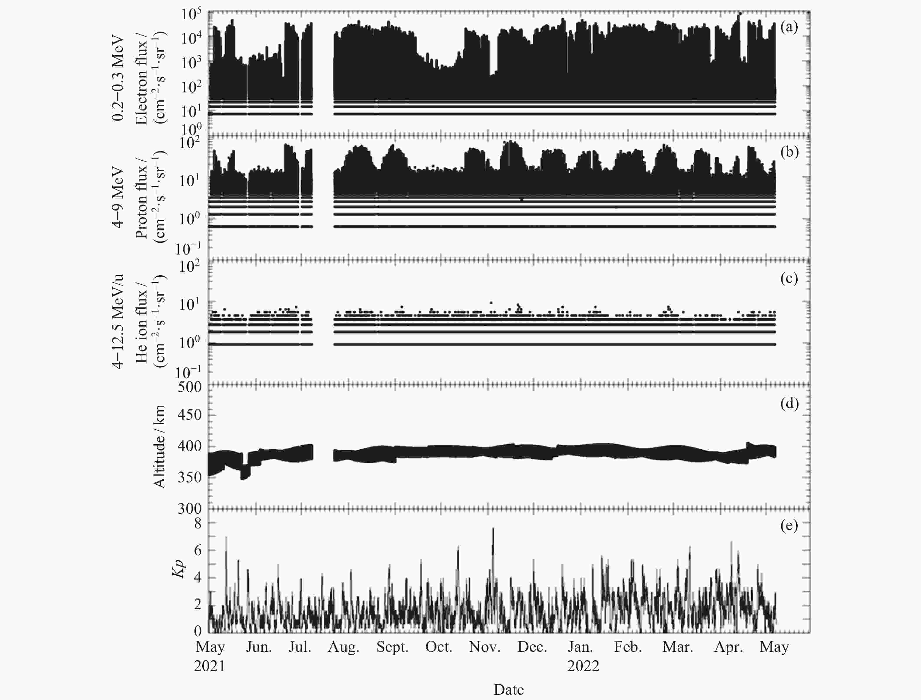 Particle species Geometric factor /(cm–2·sr–1) Electrons E1 E2 E3 E4 E5 E6 E7 E8 E9 0.139 0.125 0.065 0.072 0.104 0.115 0.146 0.166 0.254 Protons P1 P2 P3 P4 P5 P6 – – – 1.587 1.117 0.969 0.740 0.857 1.022 – – – α ions I1 I2 I3 – – – – – – 1.093 0.864 0.680 – – – – – – Table 4. Peak flux of 22 X-ray flares from May 2021 to April 2022 (1–8 Å)