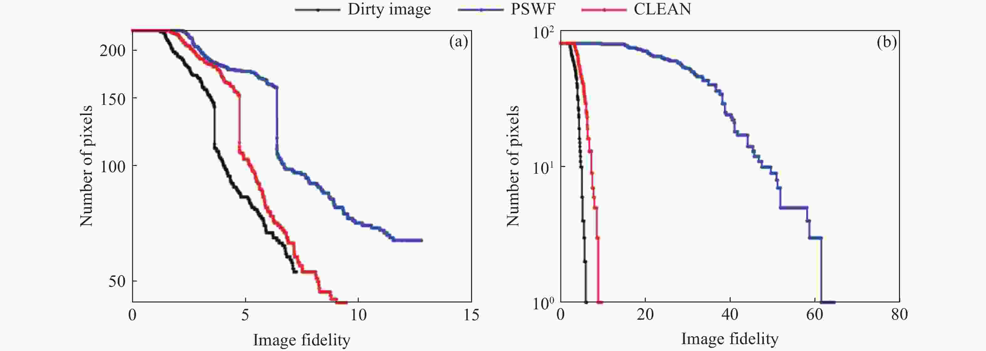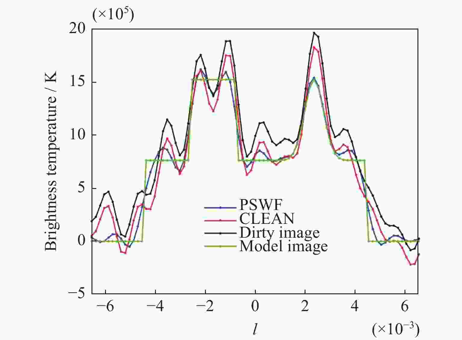 方法 均值/K 方差/K PSWF 1.60×104 9.86×104 CLEAN 2.84×104 1.89×105 表 2 脏图和两种去卷积方法的动态范围