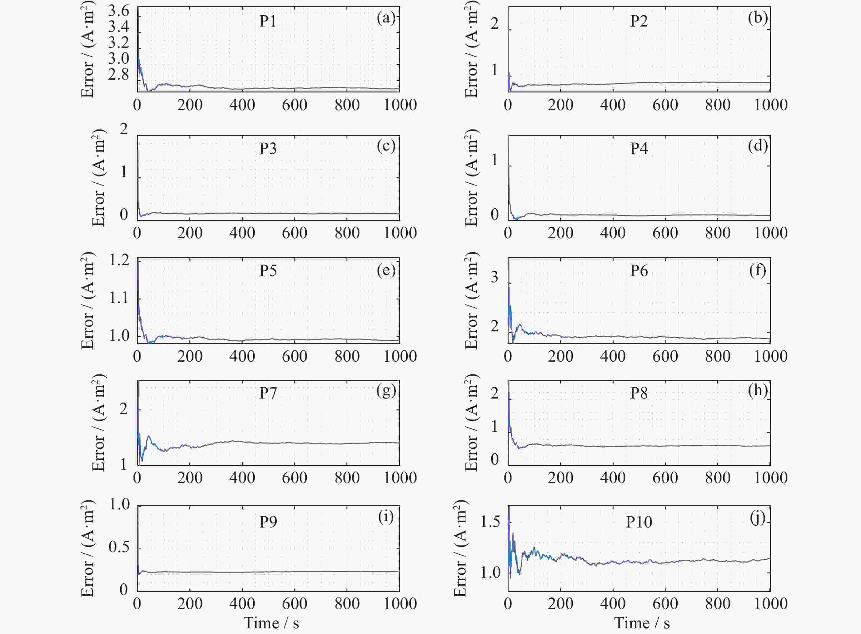 磁偶极子序号 误差百分比值/(%) 1 8.60312 2 0.30705 3 0.12553 4 0.12544 5 6.20852 6 9.14841 7 8.75330 8 9.51979 9 9.92289 10 8.76301 表 7 均匀分布下m=10, n=6时磁偶极子的误差百分比