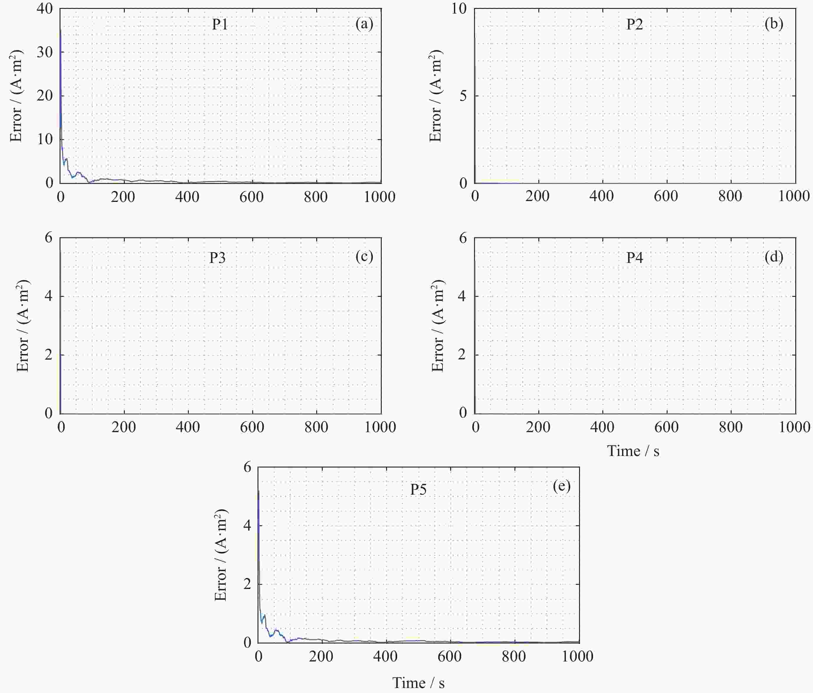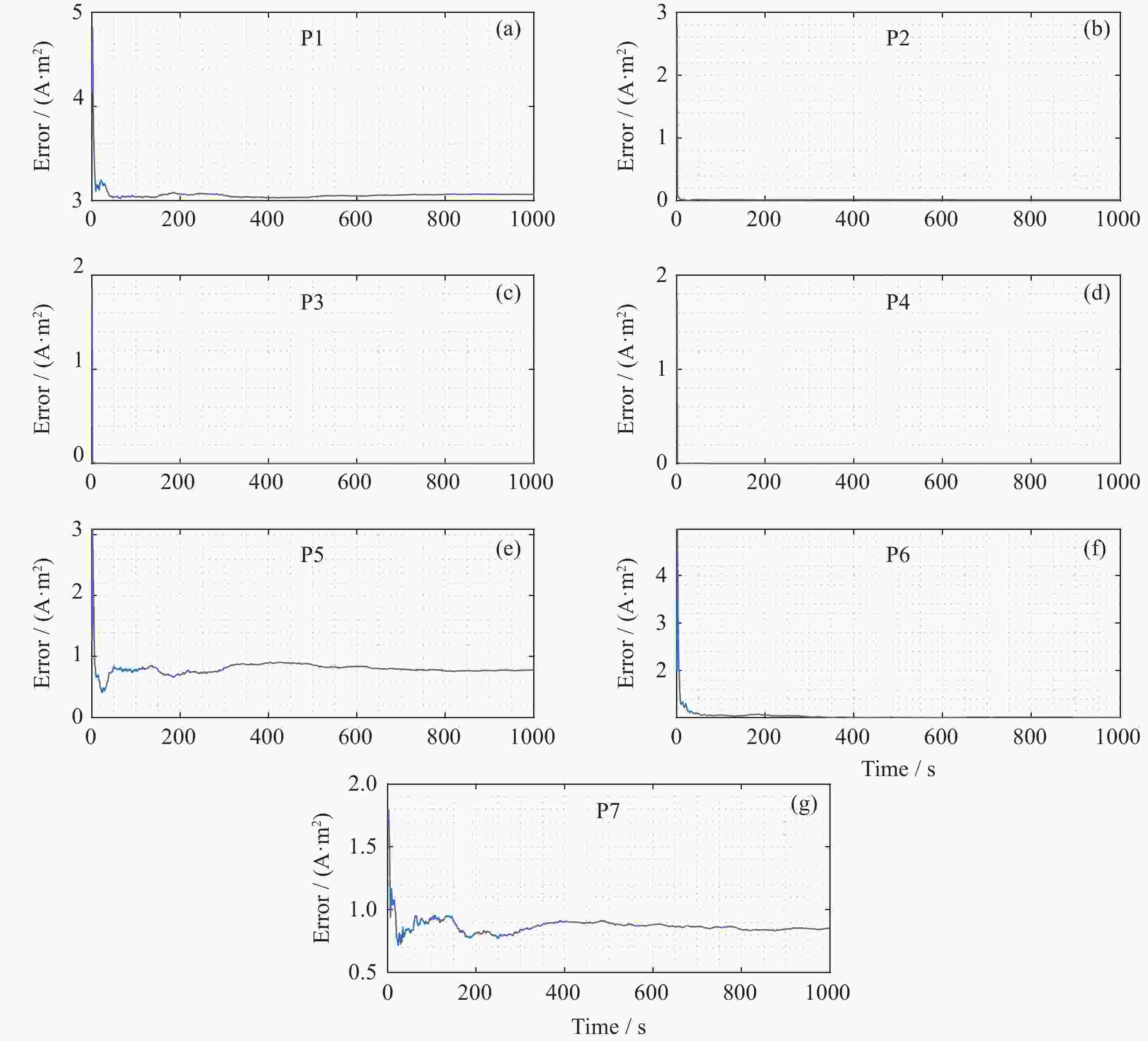 摘要: 地磁导航是通过对地球周围矢量磁场进行测量从而实现导航的一种方法. 地磁导航在运动平台上应用的难点之一是平台剩磁对地磁测量的影响, 严重污染了磁强计的测量. 消除平台剩磁对地磁测量的影响成为地磁导航向应用转化的一项关键技术. 为实现运动平台剩磁的有效测量与估计, 提出了基于递推最小二乘法的运动平台剩磁差分测量与估计方法. 基于载体干扰磁场值只与测量点到磁偶极子的距离和磁偶极子的磁矩有关的结论, 根据磁偶极子的磁场分布特性, 推导出一种基于内置磁强计阵列的运动平台剩磁差分估计模型, 并通过递推最小二乘法求解差分估计模型. 大量仿真实验表明, 可以通过内置阵列磁强计对平台剩磁进行测量与估计, 验证了所提出的平台剩磁估计方法的有效性.Abstract: Geomagnetic navigation is a method of in-situ measurement of magnetic field by the magnetometer installed on the carrier platform to realize navigation. It is a passive navigation, which has the advantages of autonomy, strong anti-interference ability and no cumulative error. One of the difficulties in the application of geomagnetic navigation on moving platform is the influence of platform remanence on geomagnetic measurement, which seriously pollutes the measurement of magnetometer and becomes a key technology in the transformation of geomagnetic navigation to application. For example, the magnetic field distribution generated by ferromagnetic materials and the interference magnetic field generated by electrical equipment during work will pollute the measured value of the magnetometer, and then affect the accuracy of geomagnetic navigation. Aiming at the complicated problem of interfering magnetic field in geomagnetic measurement, this paper focuses on the effective measurement and estimation of the remanence of a moving platform. In order to realize effective measurement and estimation of remanence of moving platform, a method of differential measurement and estimation of remanence of moving platform based on recursive least square method is proposed. Firstly, the method is based on the conclusion that the carrier interference magnetic field value is only related to the distance between the measuring point and the magnetic dipole and the equivalent magnetic moment of the magnetic dipole in magnetic dipole theory, and the magnetic field distribution characteristics of the magnetic dipole. A remanence difference estimation model of moving platform based on built-in magnetometer array is derived, and the difference estimation model is solved by recursive least square method. Finally, a large number of simulation experiments show that the platform remanence estimation method can be measured and estimated by the built-in array magnetometer, which proves the effectiveness of the proposed method and lays a theoretical foundation for accurate geomagnetic navigation.