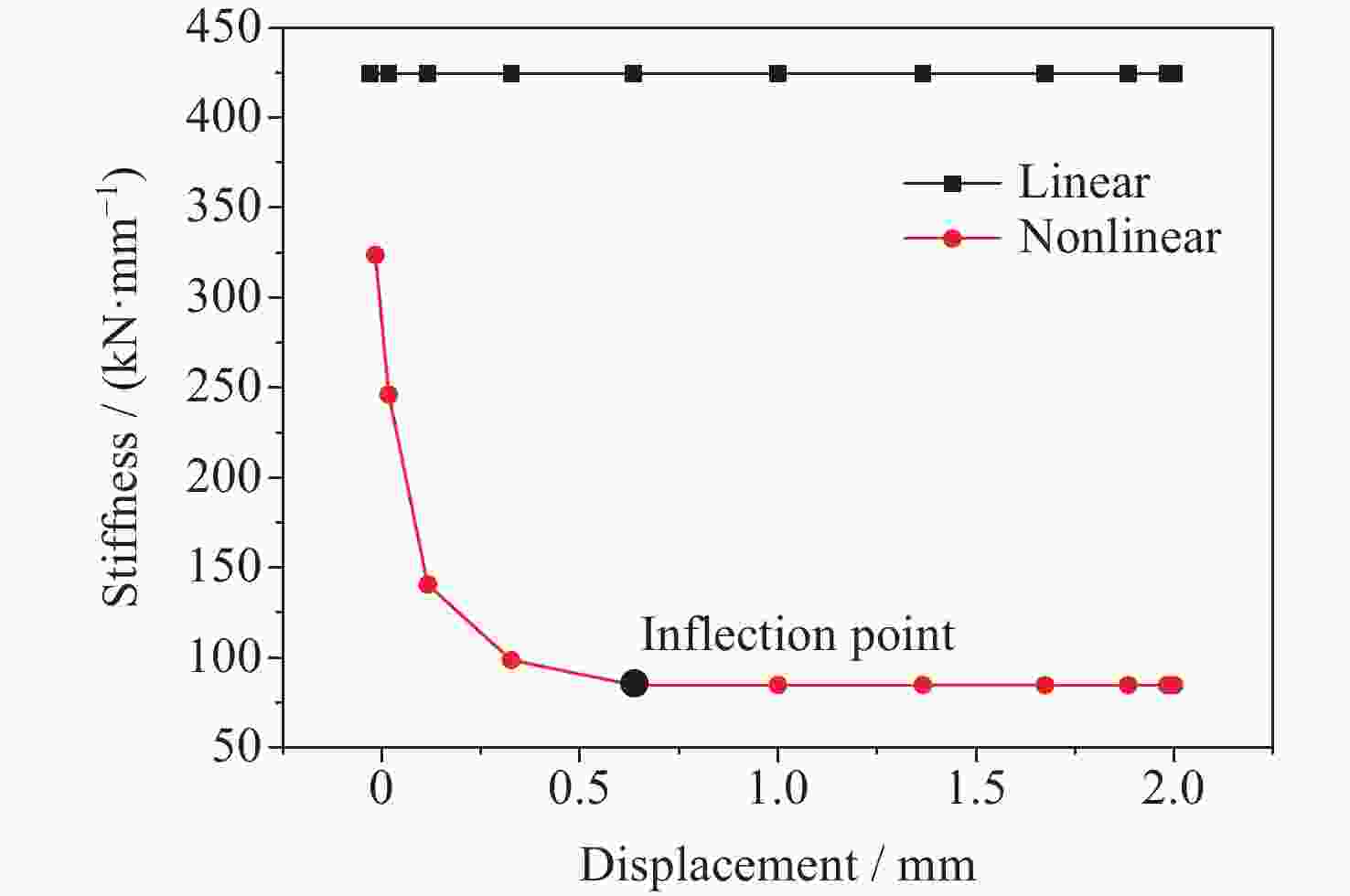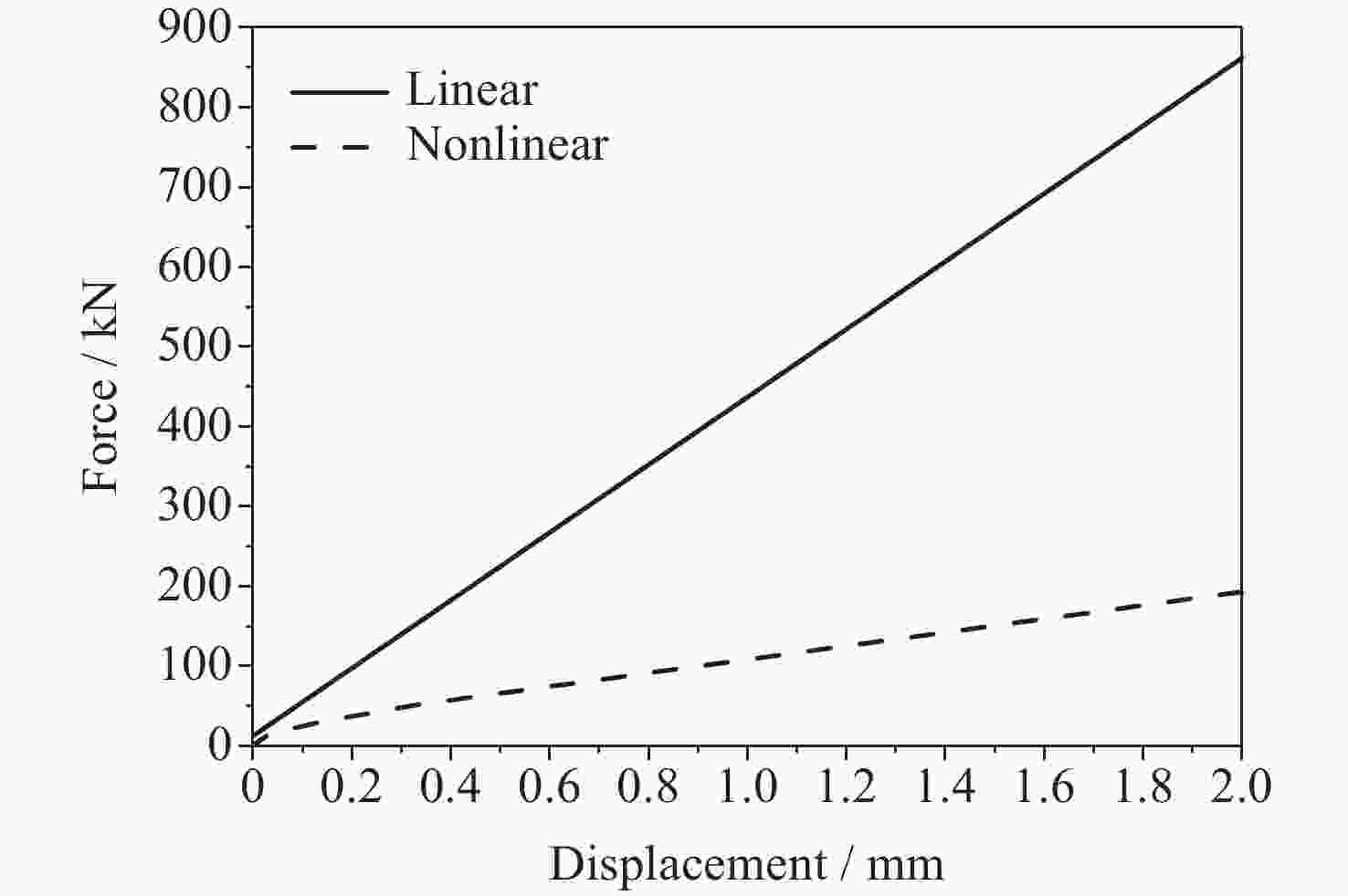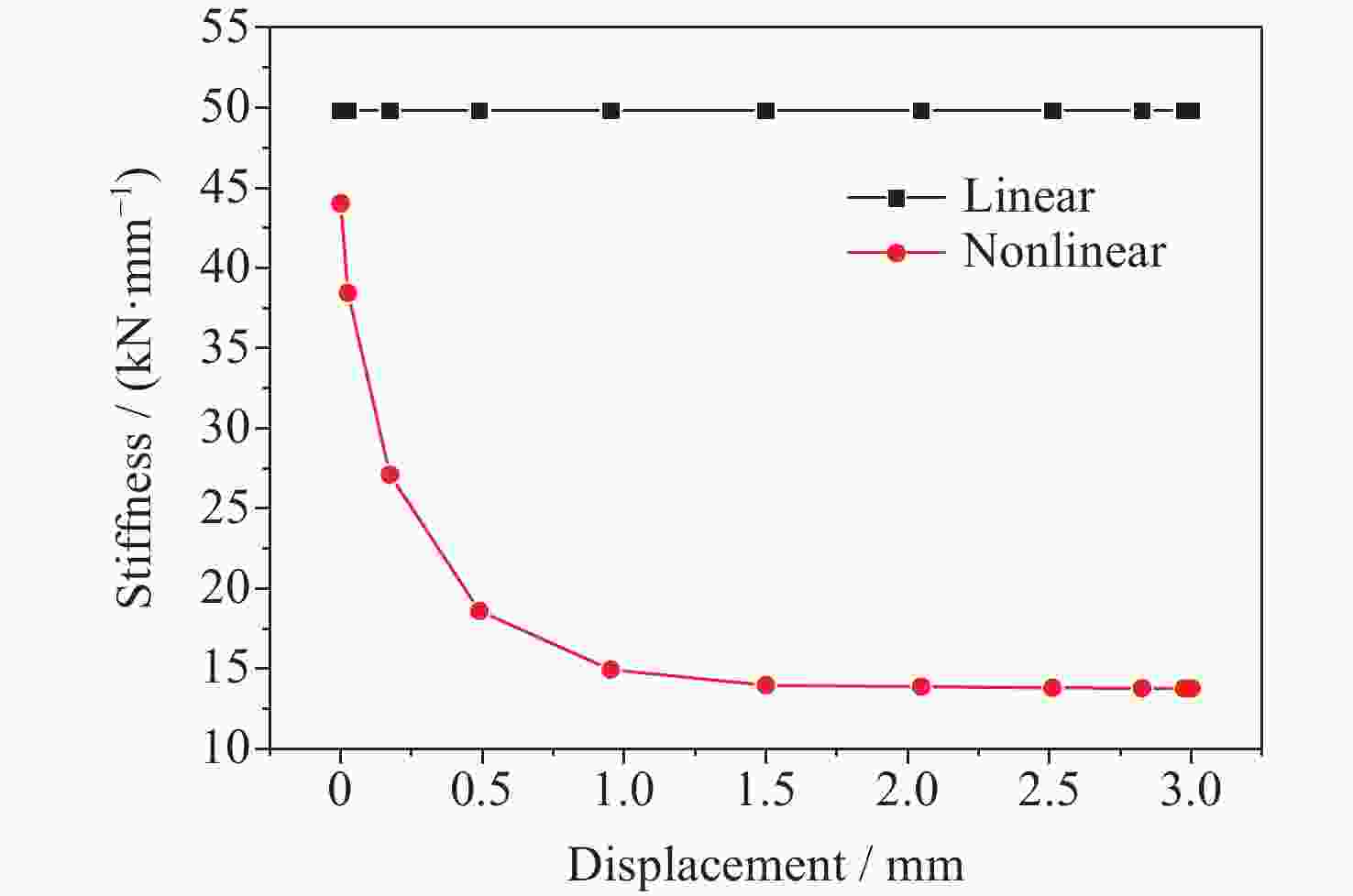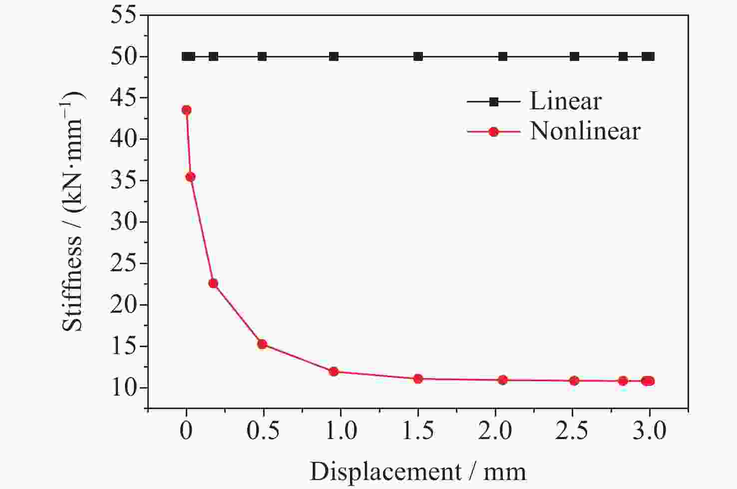 工况 线性 非线性 Px 424.5 84.6 Py 49.8 13.8 Pz 50.0 10.8 表 2 刚度值对比