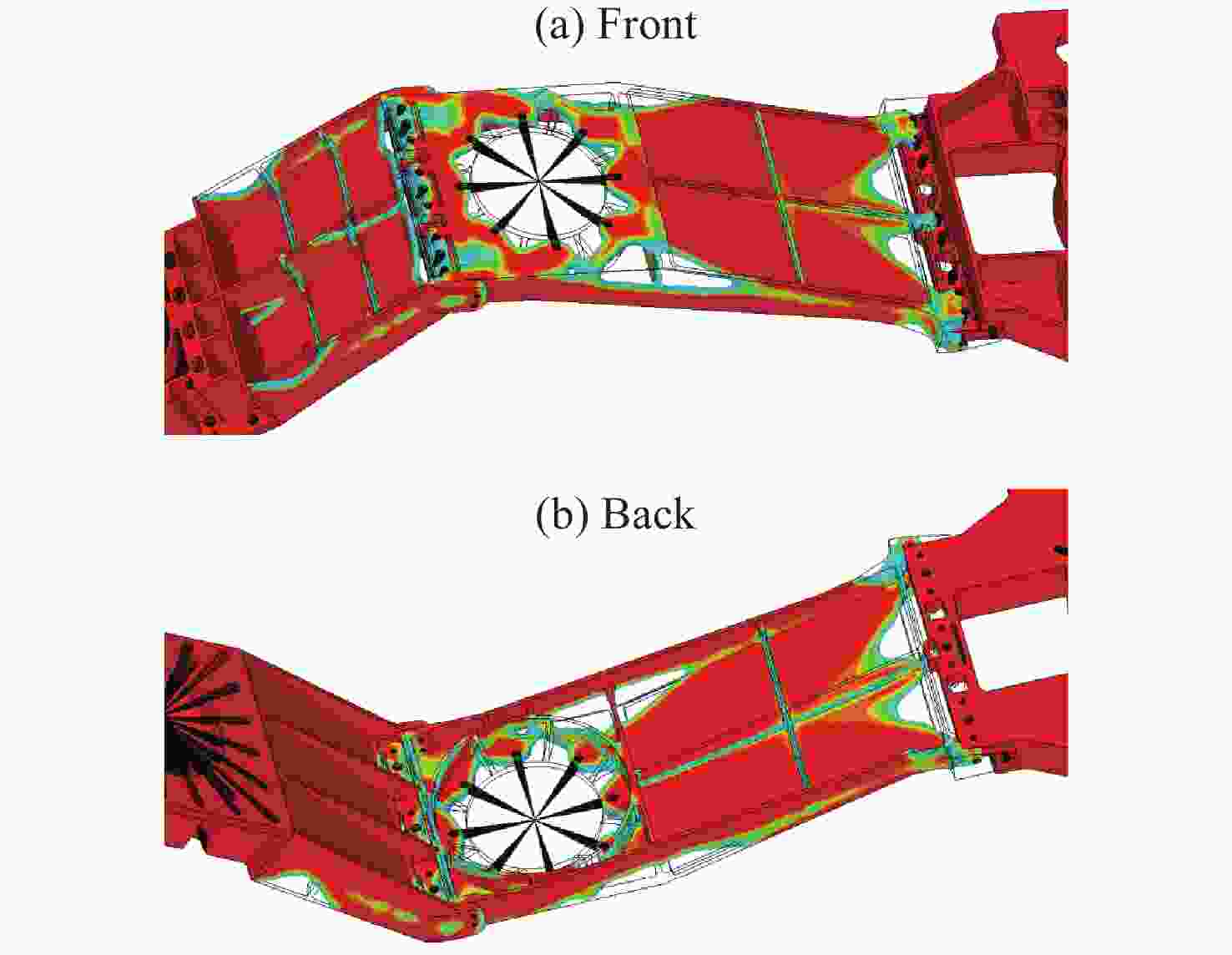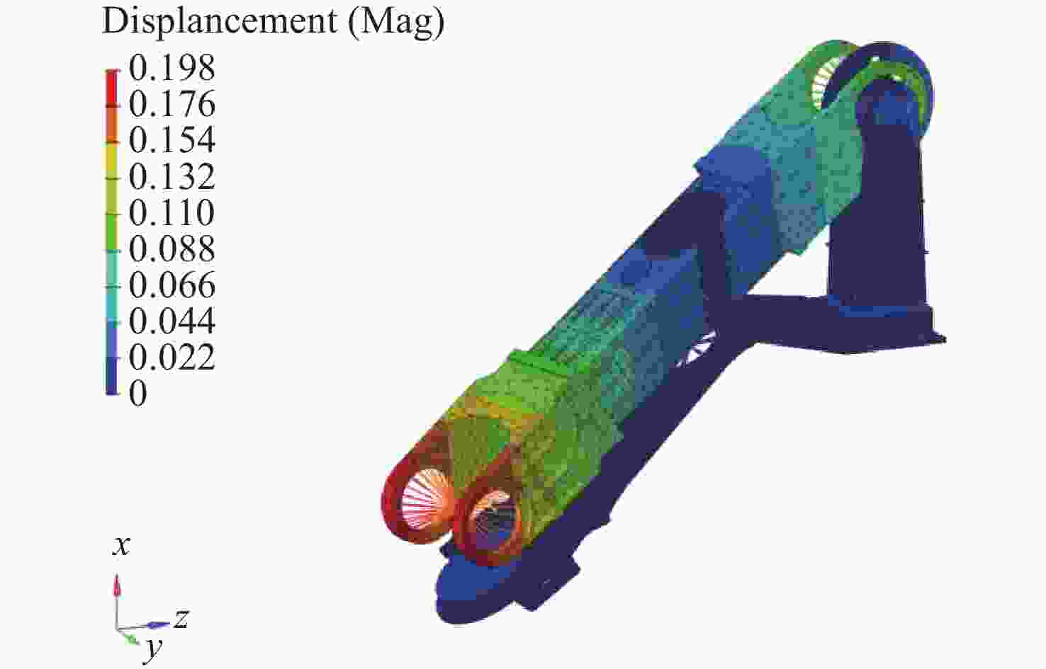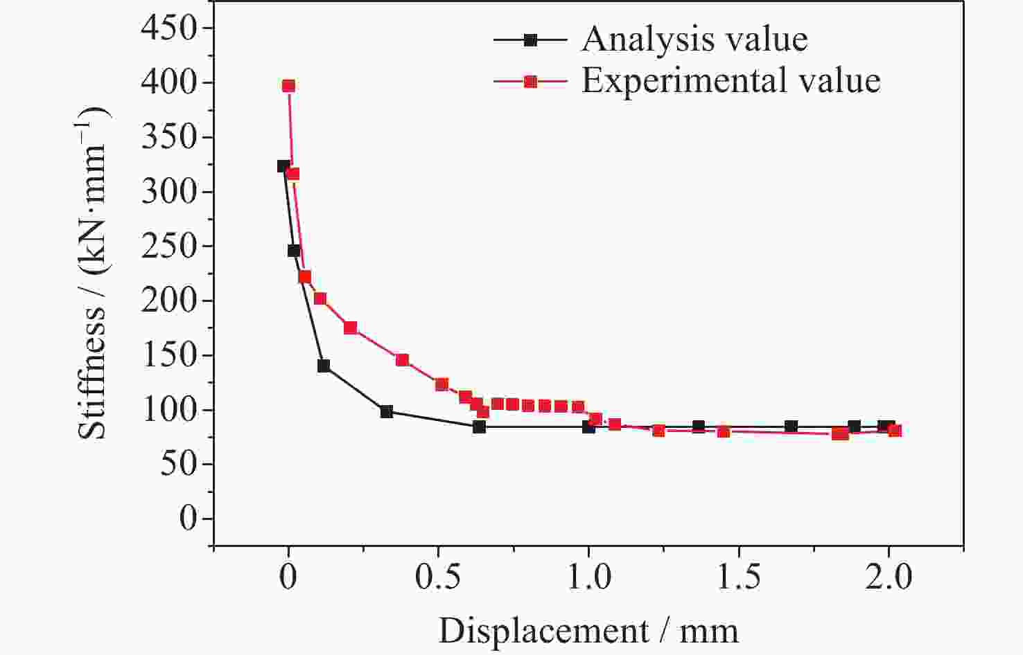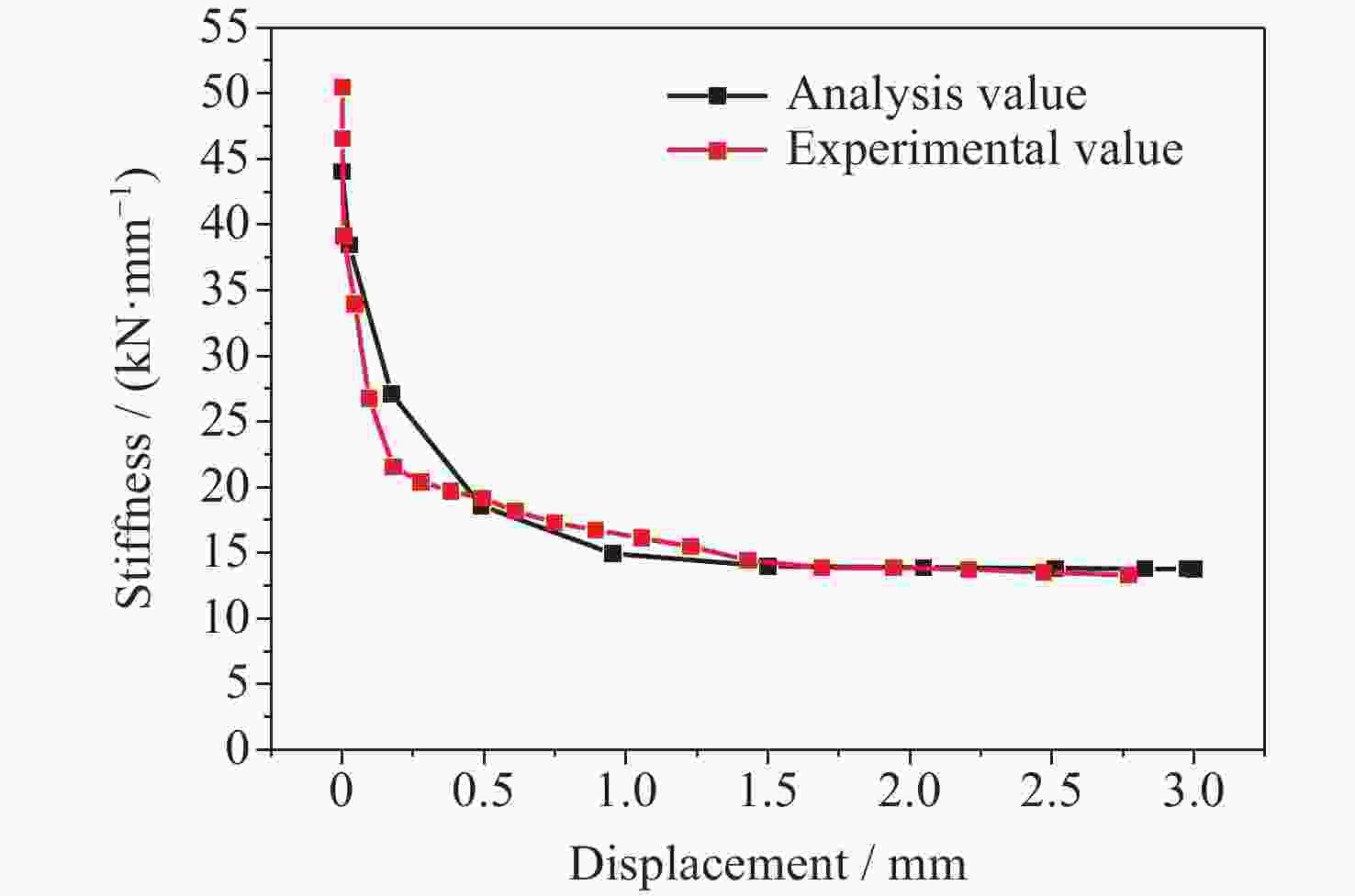 工况 刚度/(kN·mm–1) 误差/(%) 分析值 试验值 Px 84.6 78.1 8.3 Py 13.8 13.3 3.8 Pz 10.8 11.6 –6.9 -