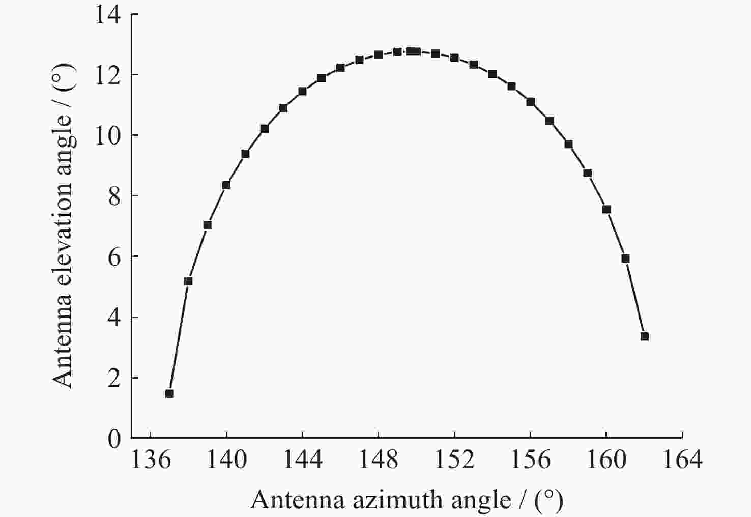 表 1 地面站天线A无遮挡最小仰角计算数据 (起始跟踪最小仰角为5º)