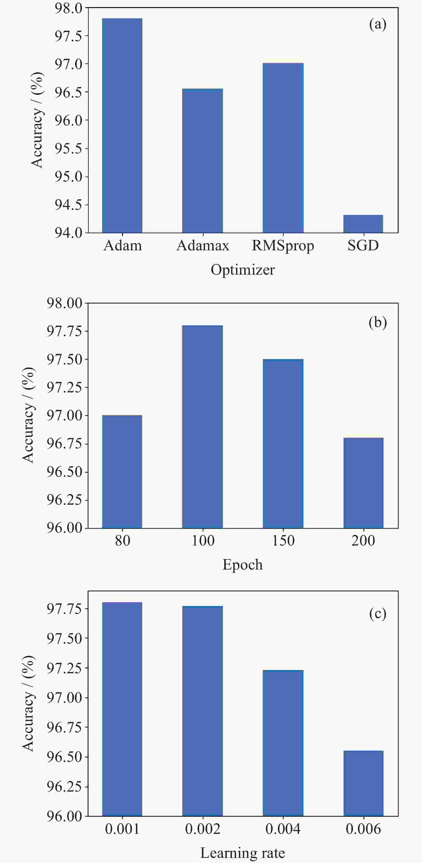 网络主要参数 值 学习率 0.001 批尺寸 128 迭代轮次 100 优化器 Adam 随机失活率/(%) 50 表 5 对比实验结果