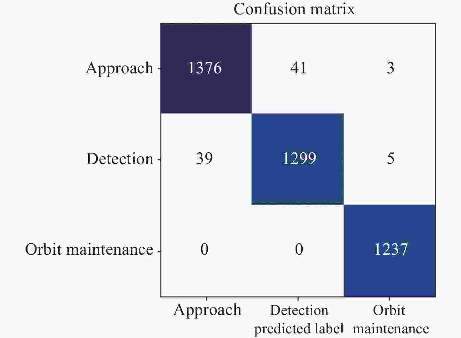 摘要: 在信息化条件下, 空间环境变得日益复杂, 空间非合作目标数量日益增长, 地面操作人员难以迅速准确地根据非合作目标的运动规律识别其意图, 因此提出基于堆叠自编码器(SAE)和门控循环网络(GRU)的空间非合作目标行为意图识别模型, 用于协助地面操作人员识别非合作目标的意图. 该模型利用自编码器对时间序列数据进行压缩, 提取其中的关键特征, 并采用GRU网络对轨迹进行分类. 由于目前尚无公开的非合作目标行为的轨道数据可供使用, 仅依靠少量已知数据难以充分训练模型. 为解决样本不足导致识别效果不佳的问题, 提出一种仿真样本生成方法, 通过仿真得到大量目标行为的轨道数据, 可用于空间非合作目标行为意图的识别. 得到仿真数据后, 将仿真数据集作为输入开展实验, 结果显示, 与仅使用长短期记忆网络(LSTM)、门控循环单元–全卷积网络(GRU-FCN)、堆叠自编码器(SAE)以及反向传播(BP)等单一模型相比, 本方法在准确率、损失值性能指标上均有显著提升, 准确率达到了97.8%.Abstract: Under the conditions of informatization, the space environment has become increasingly complex, and the number of non cooperative targets in space is growing. Ground operators find it difficult to quickly and accurately identify the intentions of non cooperative targets based on their motion patterns. Therefore, a spatial non cooperative target behavior intention recognition model based on Stacked Autoencoder (SAE) and Gated Recurrent network Unit (GRU) was proposed to assist ground operators in identifying the intention of non cooperative targets. This model utilizes an autoencoder to compress time series data, extract key features, and uses a GRU network to classify trajectories. At present, there is no publicly available orbit data for non cooperative target behavior, and it is difficult to fully train the model with only a small amount of known data. To solve the problem of poor recognition performance caused by insufficient samples, a simulation sample generation method is proposed, which obtains a large amount of target behavior trajectory data through simulation for the recognition of spatial non cooperative target behavior intentions. After the simulation data is obtained, the simulation data set is used as the input. The experimental results show that compared with the single model only using the Long and Short Term Memory network (LSTM), GRU-FCN, SAE, and Back-Propagation (BP), this method has significantly improved the accuracy and loss value performance indicators, reaching 97.8% accuracy.