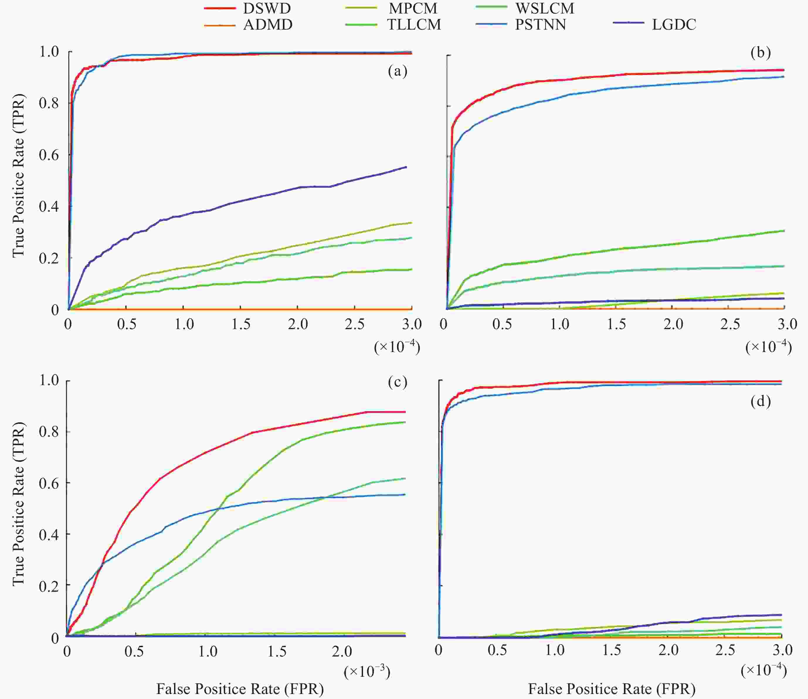 Figure  7.  ROC curves of different algorithms under four sets of sequences