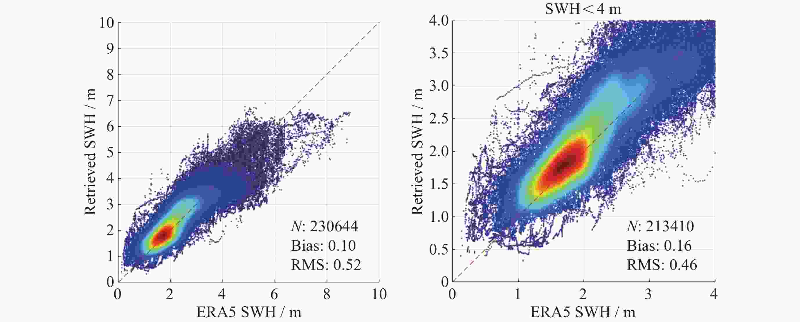 技术 卫星/载荷 精度/m 反演方法 对比数据源 参考文献 雷达高度计 Jason, Sentinel-3, HY-2 0.2~0.3 波形前沿斜率 浮标、高度计 [10–12,15] SAR Radasat, Sentinel-1等 0.3~0.5 先反演海浪谱, 再对海浪