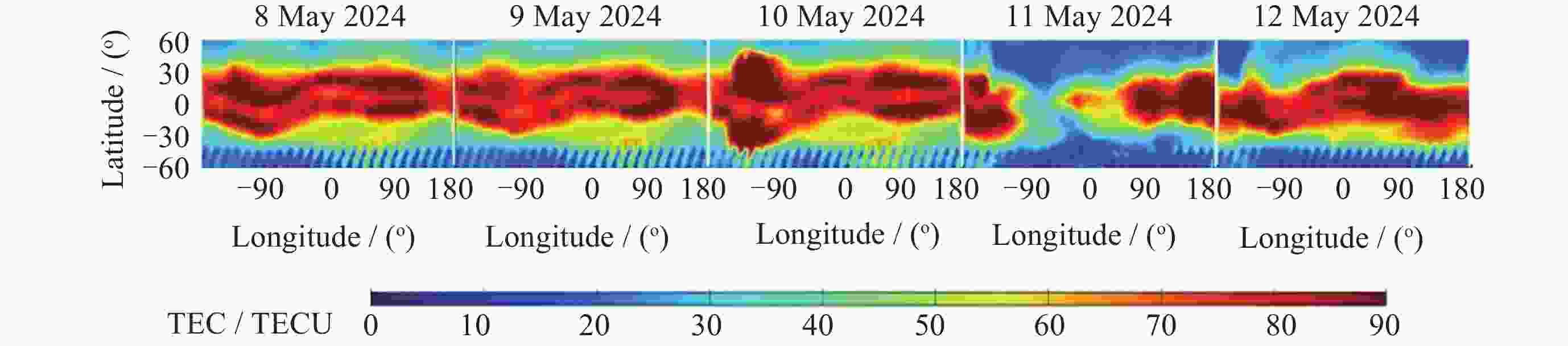 图  5  IGS TEC在2024年5月11日前后的全球分布