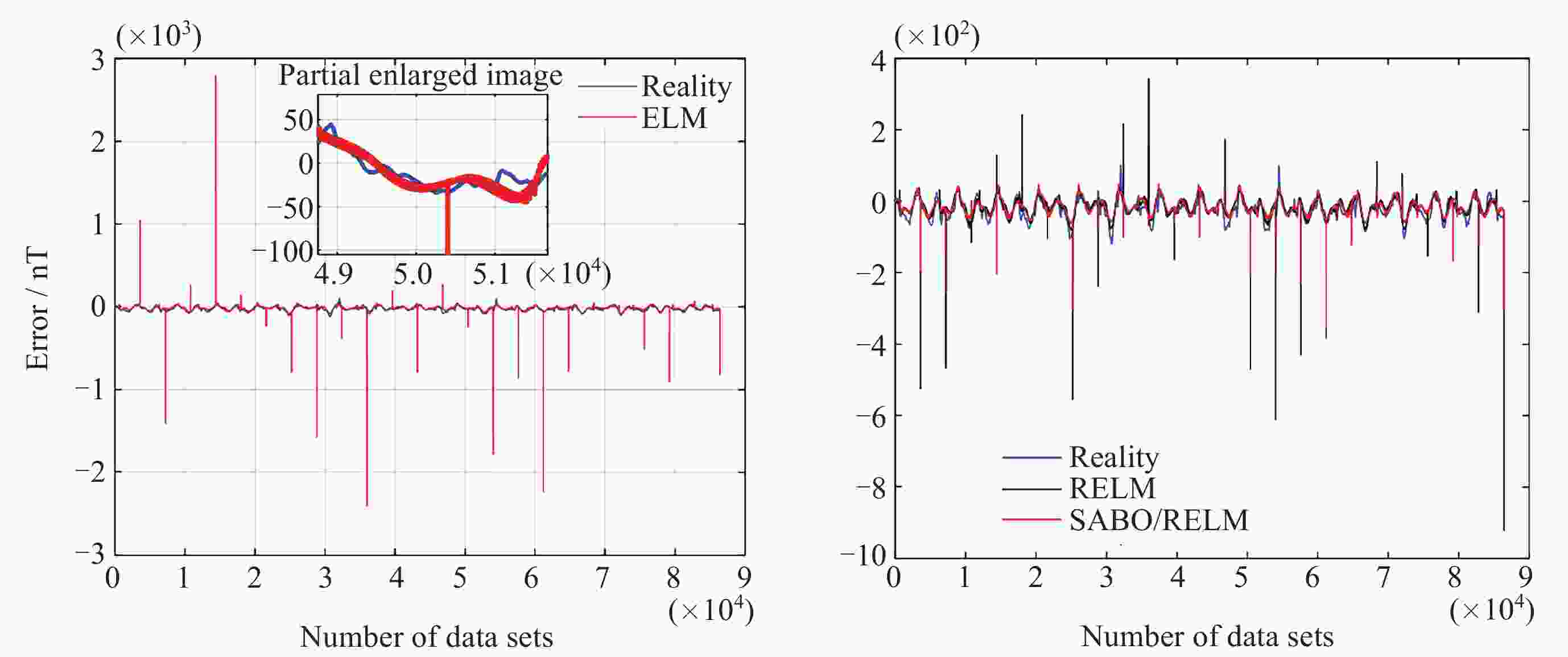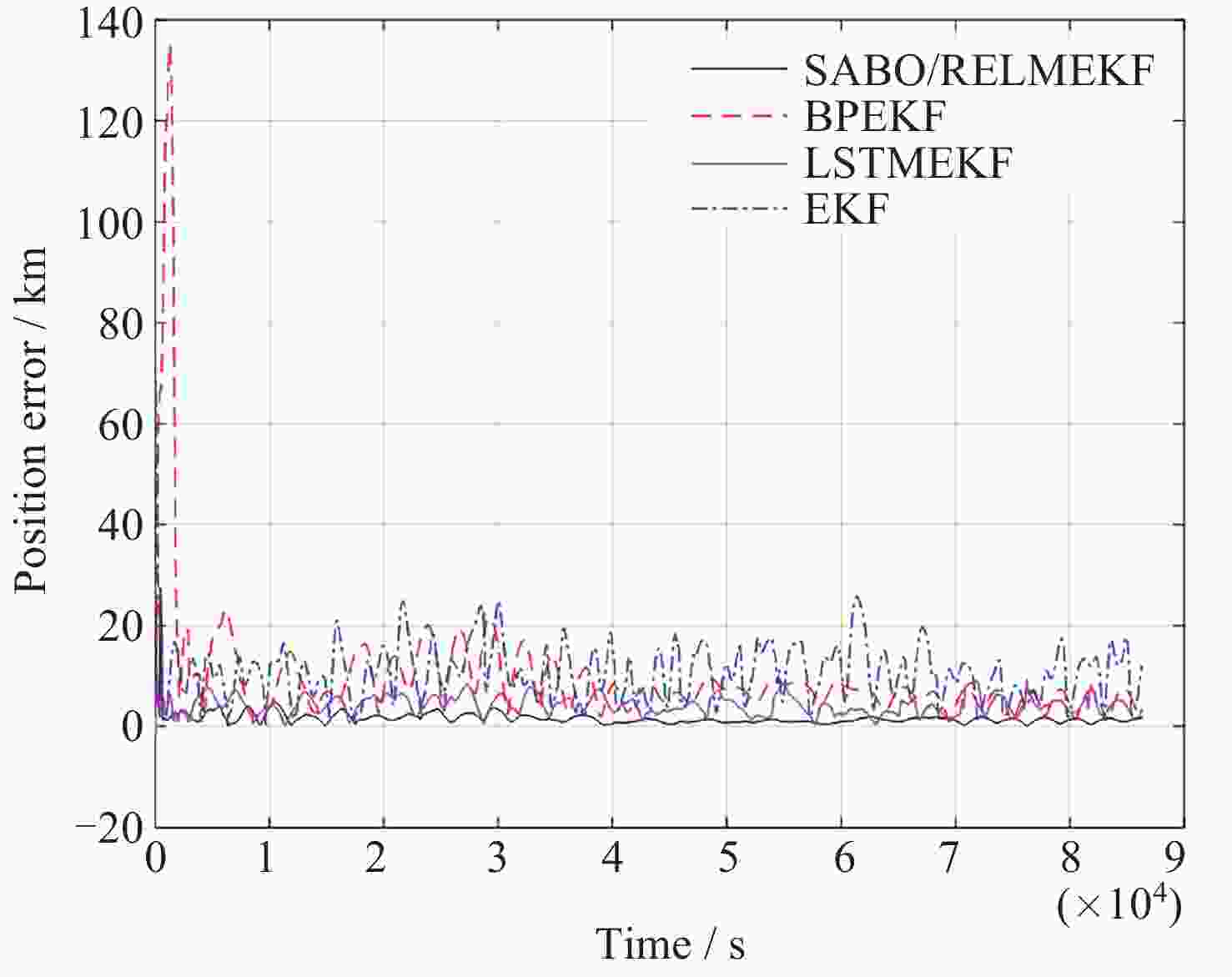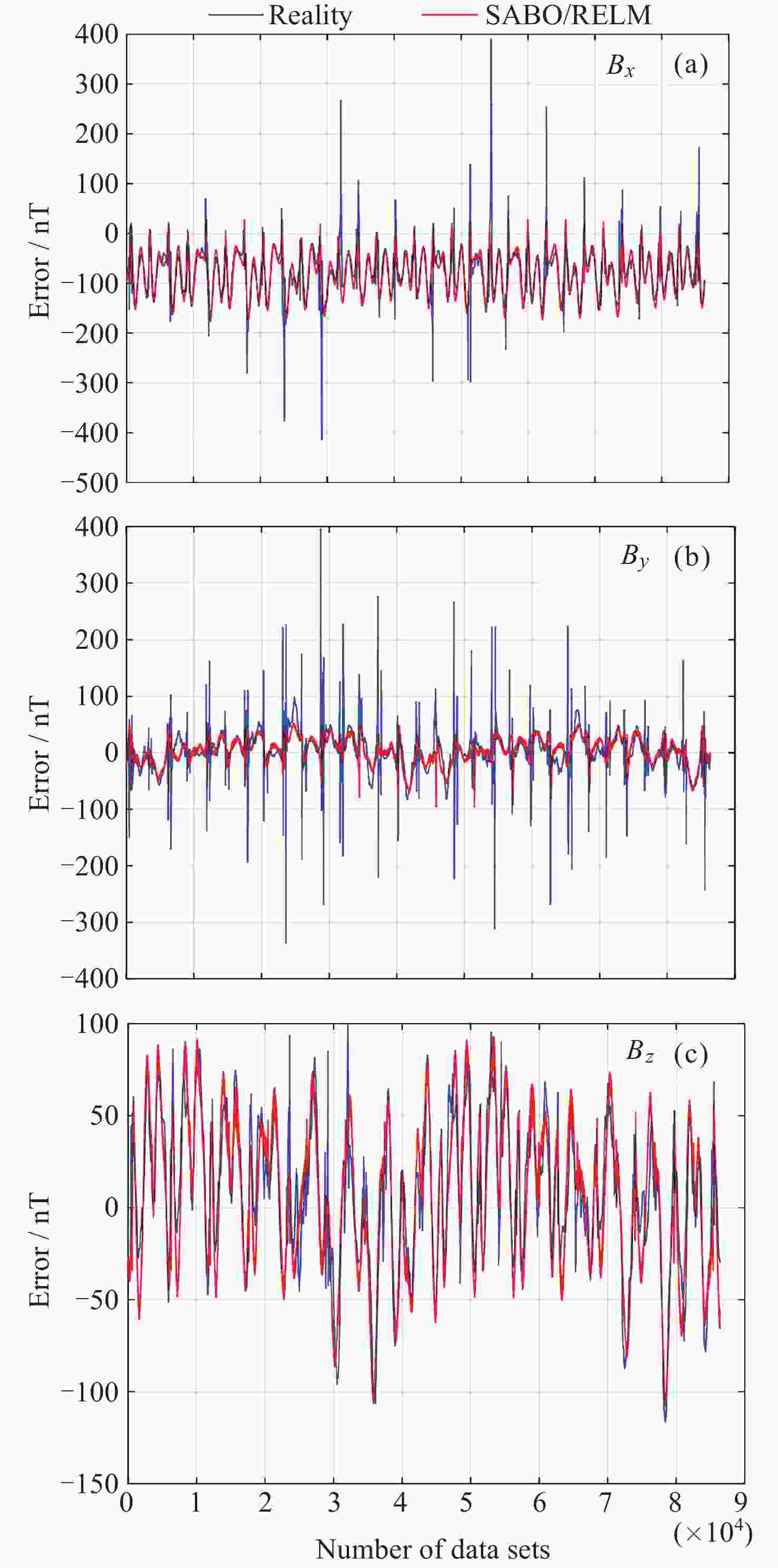 方法 Bx By Bz 均值/nT 标准差 均值/nT 标准差 均值/nT 标准差 ELM (不含异常值) –80.01 40.91 3.68 23.34 6.48 40.45 ELM (含异常值) –80.28 52.26 4.19 53.42 6.40 57.04 RELM (含异常值) –79.61 37.94 3.56 18.77 6.78 36.82 SABO/RELM (含异常值) –79.70 40.59 3.67 21.83 6.75 39.31 表 4 地磁导航方法的误差统计