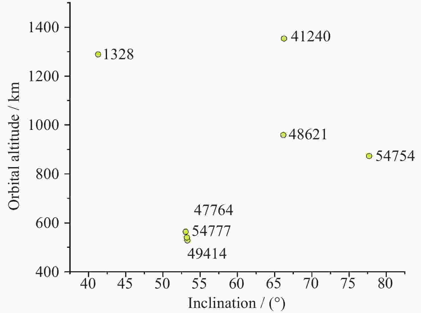 NORAD ID 弧段数量 弧长/s 轨道根数误差 半长轴/km 偏心率 倾角/(°) 1328 2 39 134.2 0.02213 0.12 41240 31 51 17.1 0.00187 0.10 46984 21 47 19.6 0.00202 0.12 47764 2 30 16.1 0.00215 0.02 48621 11 37 18.6 0.00158 0.14 49414 1 44 13.5 0.00255 0.08 54754 6 45 12.6 0.00236 0.14 54777 1 28 2.7 0.00206 0.03 平均值 9.4 40 29.3 0.00459 0.09 -