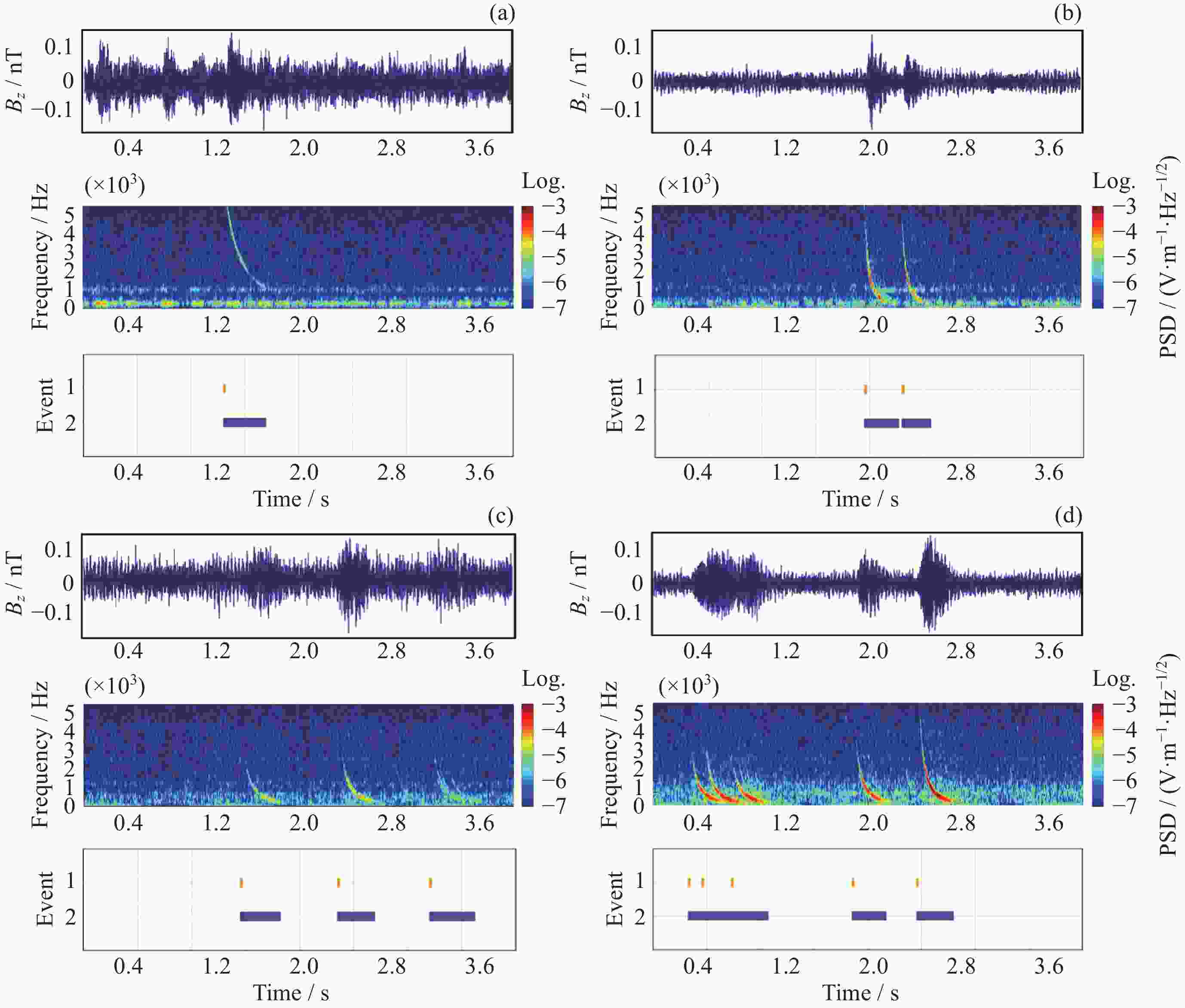 摘要: 张衡一号卫星在轨6年积累了海量观测数据, 检测其中的闪电哨声波事件(Lightning Whistler, LW)对于分析空间物理环境规律具有重要意义. 但现有基于时频图像的方法推理速度过慢, 完成任务需约40年. 为此, 研究首次从音频事件检测的角度提出高速的闪电哨声波检测模型WhisNet, 将检测的时间成本从40年压缩至54天. 方法为以4 s滑动窗截取波形, 提取梅尔频谱特征, 利用轻量级卷积循环神经网络(CRNN)提取音频事件特征, 输出层预测LW事件起始时间和持续时长. 基于2020年4月1-10日的感应磁力仪(SCM)数据实验显示, WhisNet检测性能与传统方法相当, 但计算量和参数量减少99%, 速度提升98%. 进一步在2020年5月SCM数据上的应用结果与WGLC (全球闪电气候学和时间序列, WWLLN Global Lightning Climatology and time series)全球闪电密度趋势高度一致, 验证了WhisNet在大规模卫星数据处理中的准确性与适用性. 研究结果为挖掘其他海量地球空间事件提供了重要参考.Abstract: The Zhangheng Satellite has accumulated a vast amount of observational data over its six years in orbit. Detecting all Lightning Whistler (LW) events from this dataset is crucial for comprehensively analyzing the variation patterns of the space physical environment. However, using the current mainstream LW detection technology, which is based on time-frequency spectrograms, it would take approximately 40 years to complete this task. To address the slow inference speed and meet practical engineering demands, this study proposes, for the first time, a high-speed detection model for lightning whistler waves from the perspective of audio event detection — WhisNet. This model reduces the time cost from 40 years to just 54 days. First, waveform data is segmented using a 4-second sliding window; then, Mel-spectrogram audio features are extracted. Next, a lightweight Convolutional Recurrent Neural Network (CRNN) is constructed to further extract the audio event features of LW. Finally, two fully connected networks are created at the output layer to predict the start time and duration of each LW event. To evaluate the model’s performance and computational speed, experiments were conducted on data from the SCM (Search Coil Magnetometer) between April 1 and April 10, 2020. The results show that the performance of the WhisNet model is comparable to that of time-frequency image-based methods, but with a 99% reduction in computational and parameter costs and a 98% increase in computational speed. The model was further applied to SCM data from May 2020, and the detection results were statistically analyzed and visually compared to the average lightning density trend from the WWLLN Global Lightning Climatology and time series (WGLC) for May 2020. The high consistency between the two further confirms the applicability and accuracy of the WhisNet model in processing large-scale satellite data. This method offers significant reference value for thoroughly exploring other large-scale geospace events.