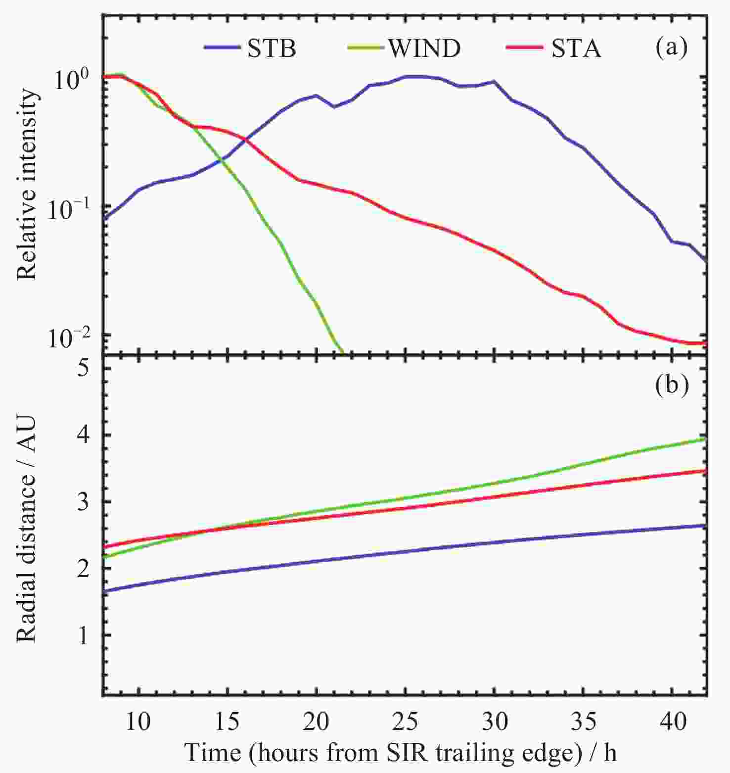 Figure 9. Temporal evolution of the radial distribution and average integrated intensity of source particles[13] (The dashed lines P1, P2, and P3 correspond sequentially to the rise, peak, and decline phases of the high-energy particle event)
