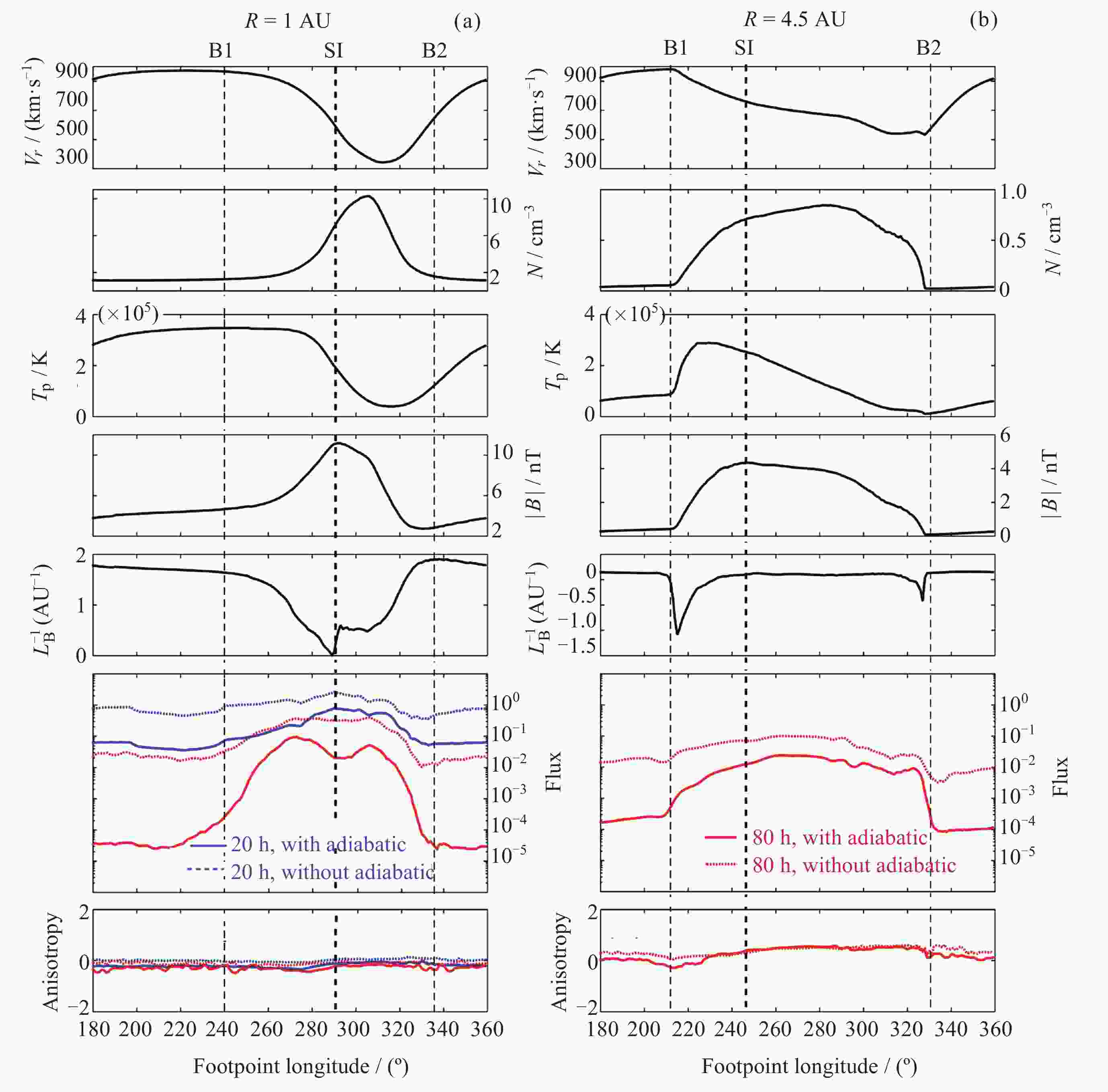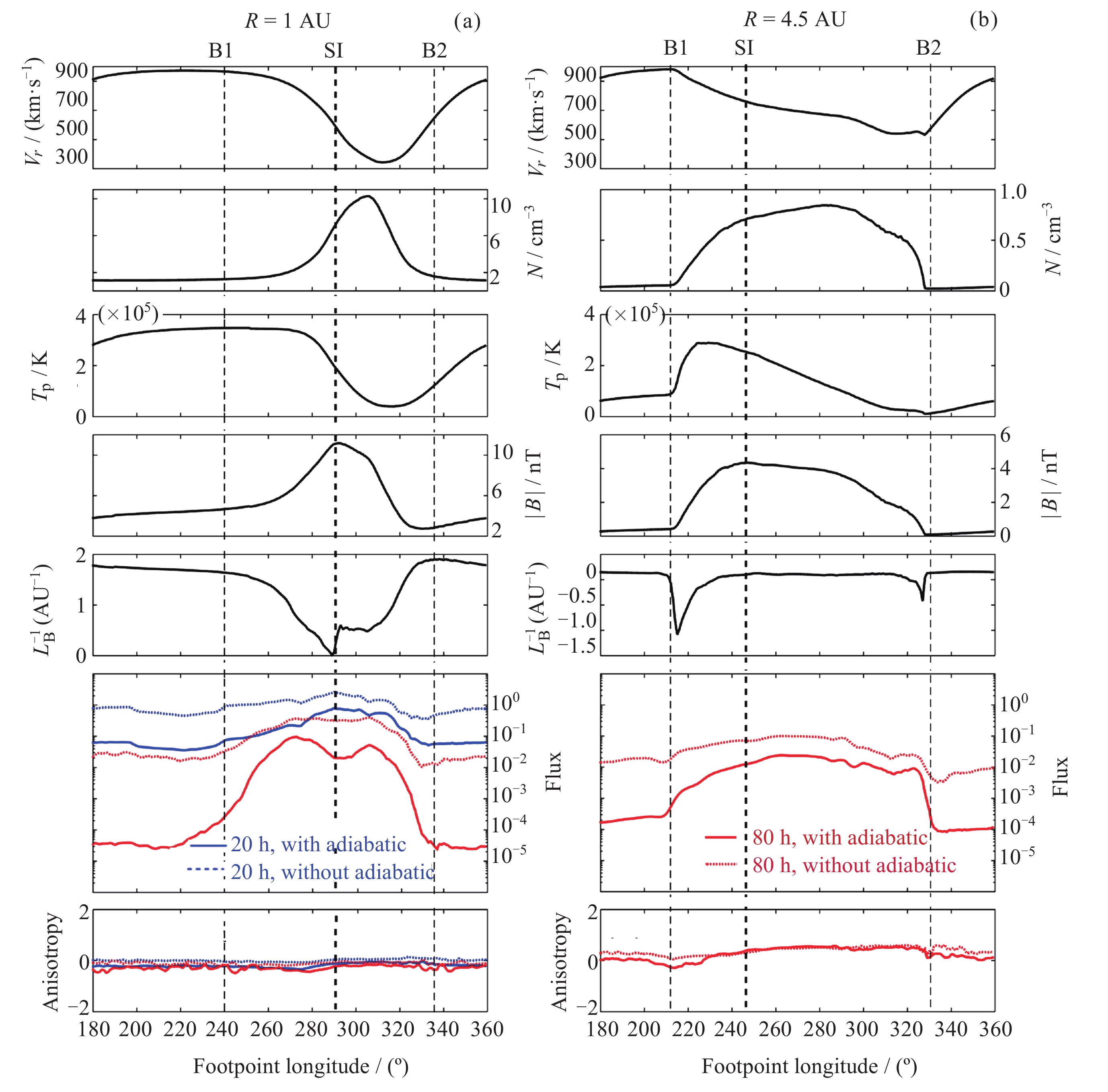 图  15  1 AU 和 4.5 AU 处太阳风参数和粒子在这些区域的演化[20]