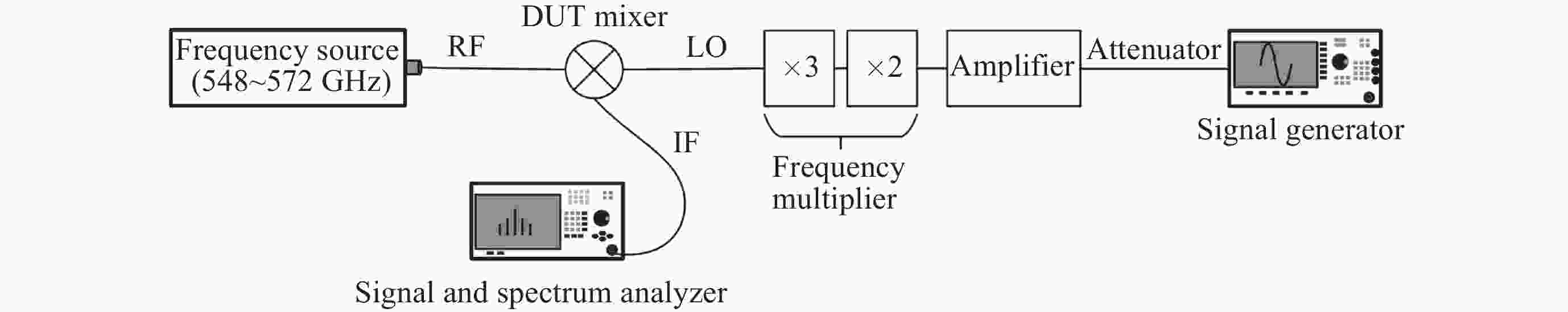 Ref. Frequency/GHz CL/dB Technology [4] 557 5.3~6.7 (DSB) Monolithic integrated [7] 433~451 14~17 (SSB) Hybrid integrated [8] 665~715 <16 (DSB) Hybrid integrated [16] 480~520 10.1~11.5 (DSB) Hybrid integrated [17] 540~580 7.5~9.5 (DSB) Hybrid integrated [18] 654~675 9~11 (DSB) Monolithic integrated [19] 520~590 8~9.5 (DSB) Monolithic integrated This work 548~572 11.7~13.4 (SSB) Monolithic integrated 注 SSB (Single Sideband)为单边带变频损耗, DSB (Double Sideband)为双边带变频损耗. -