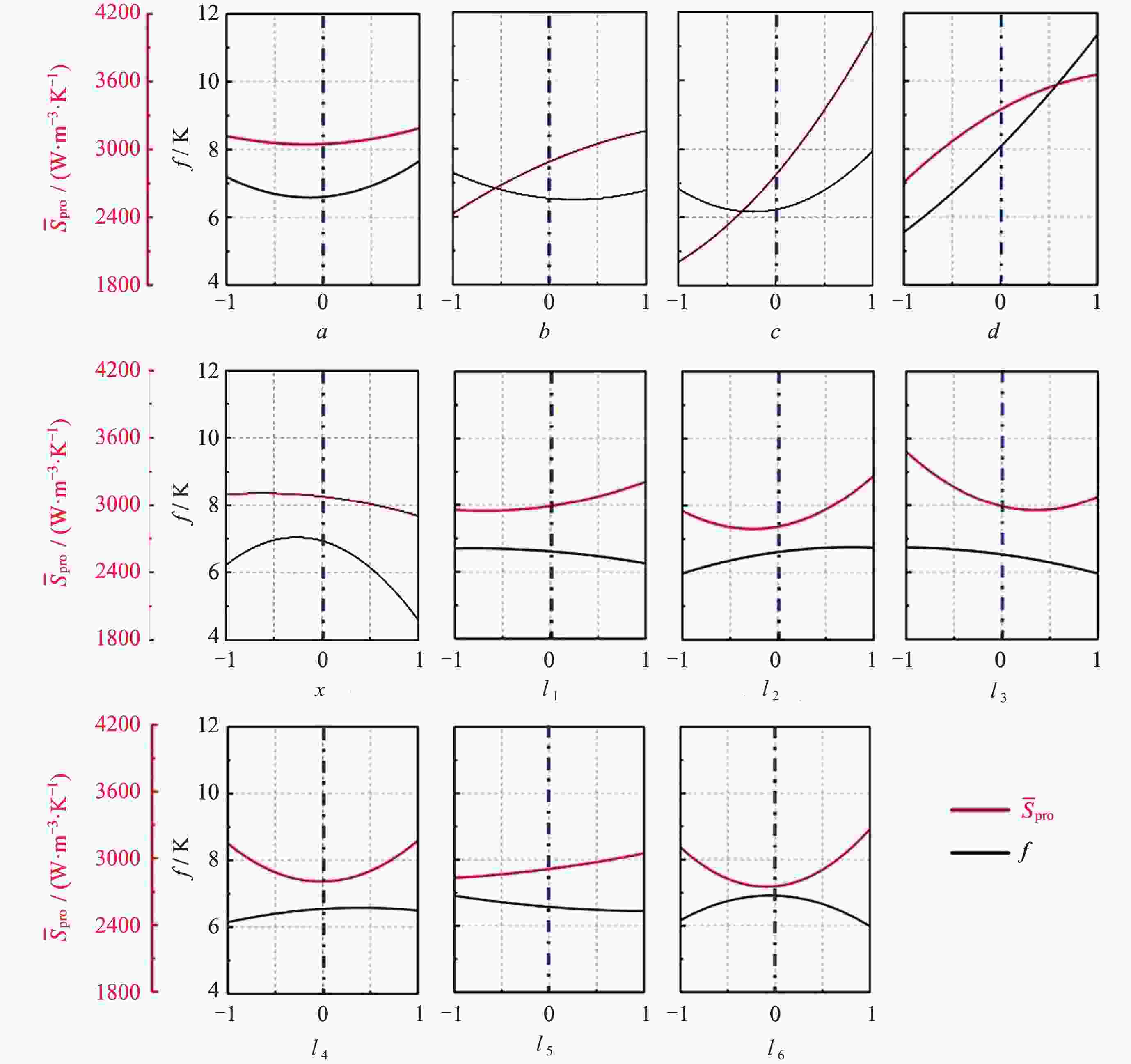 物质名称 密度/(kg·m–3) 等效热导率/(W·m–1·K–1) 比热/(J/kg–1·K–1) 乙二醇溶液 1111.4 0.252 2415 铝蒙皮 1430 115 880 蜂窝芯[16] 27 面内1.2, 法向2.0 891 外贴热管 1006 12000 910 表 2 优化前后方案设计变量取值(单位: mm)