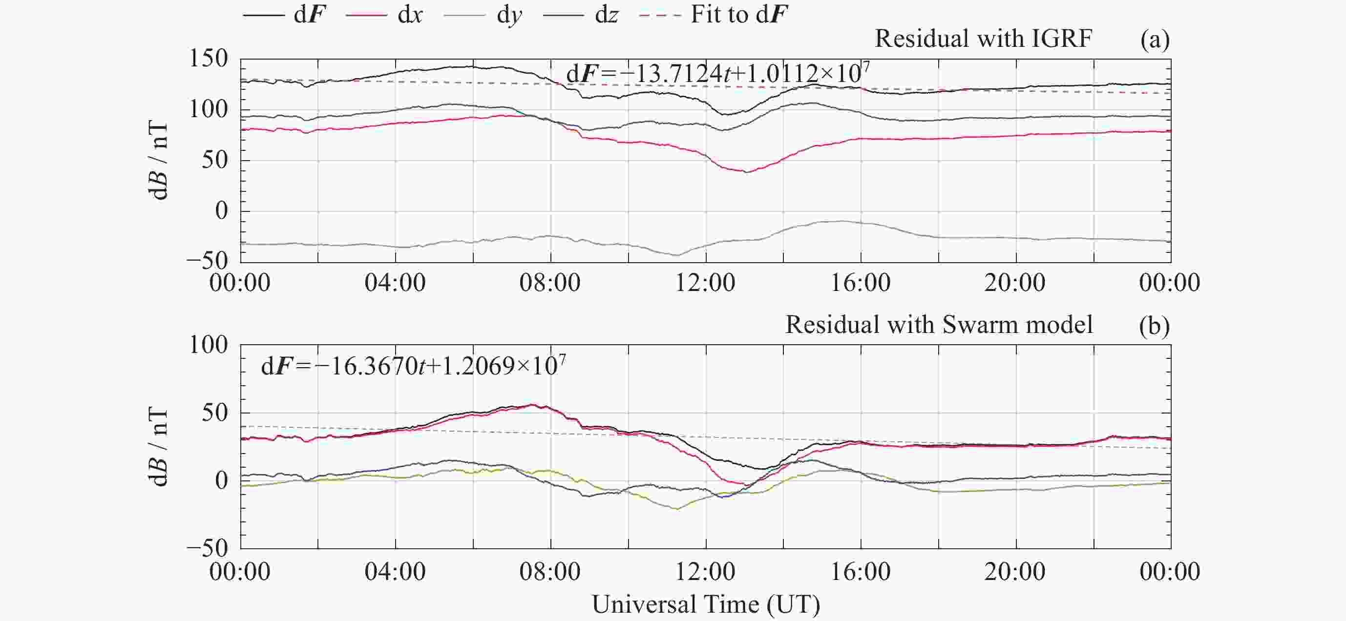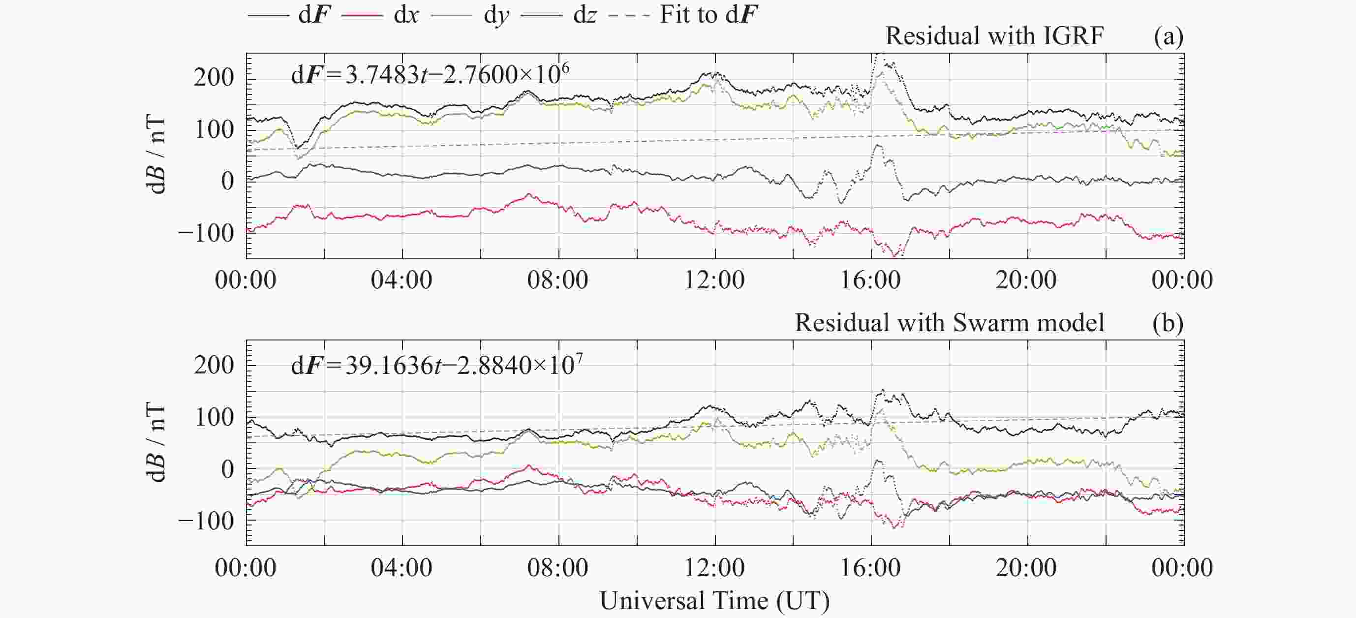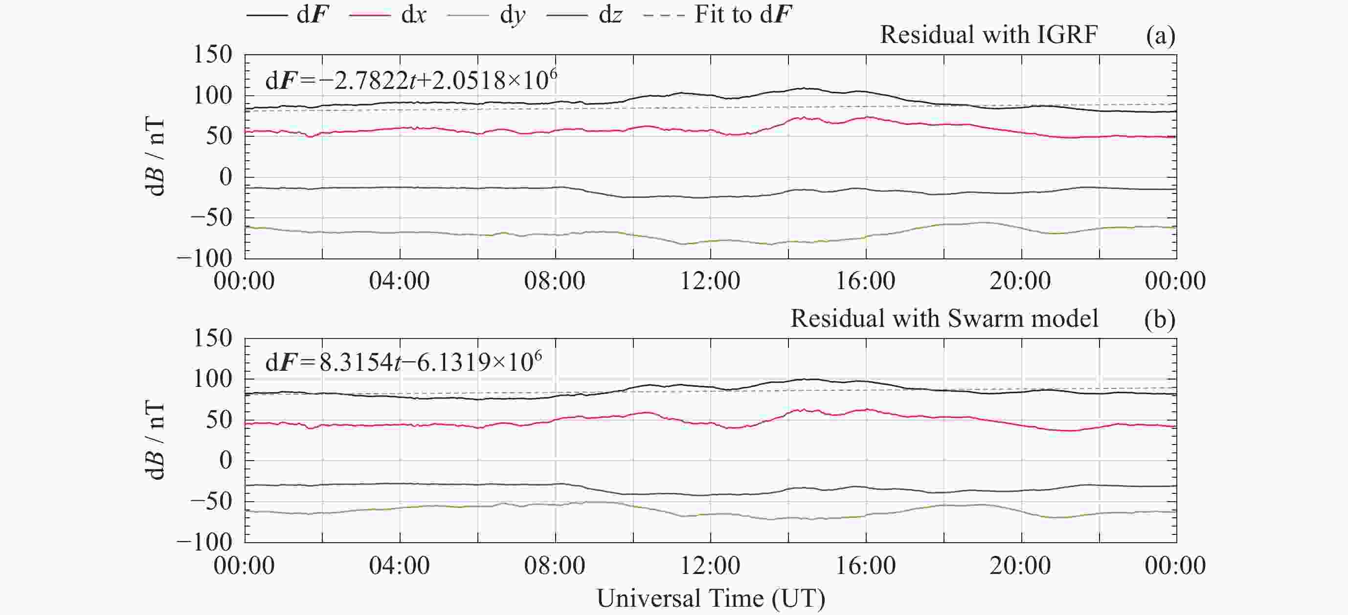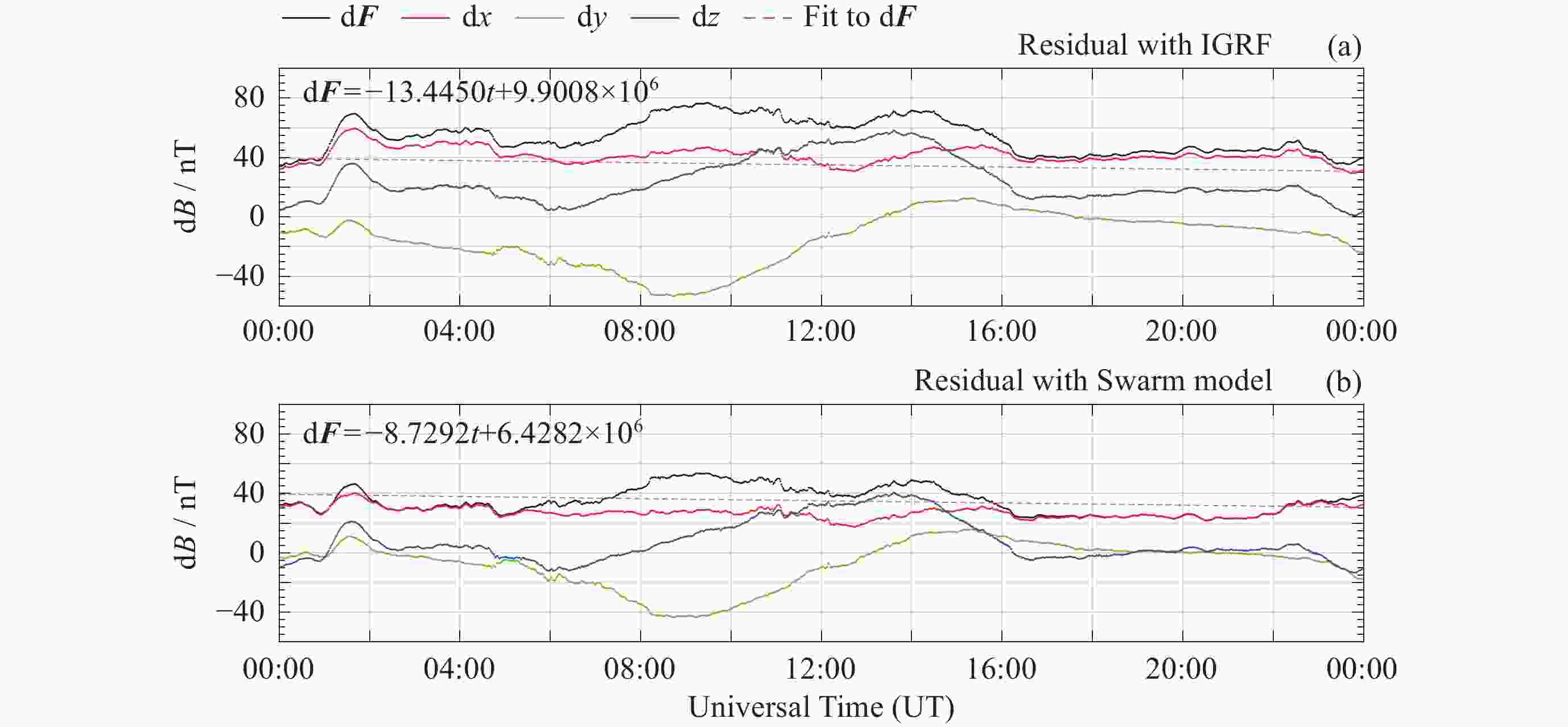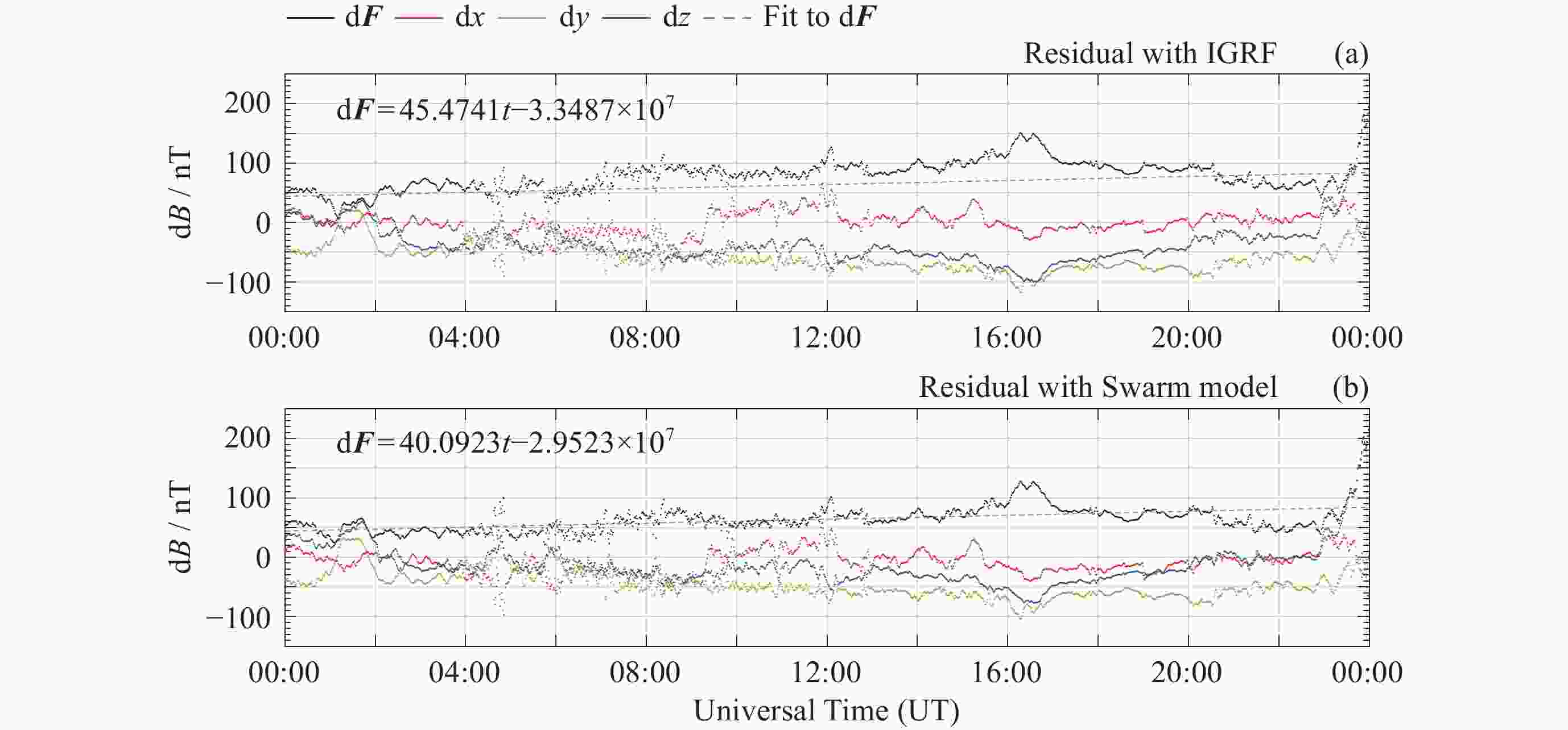 模型 d2F/nT d2x/nT d2y/nT d2z/nT Swarm 4.16735 5.2352 4.7719 4.3705 IGRF 60.6932 39.942875 33.2245 68.30735 -