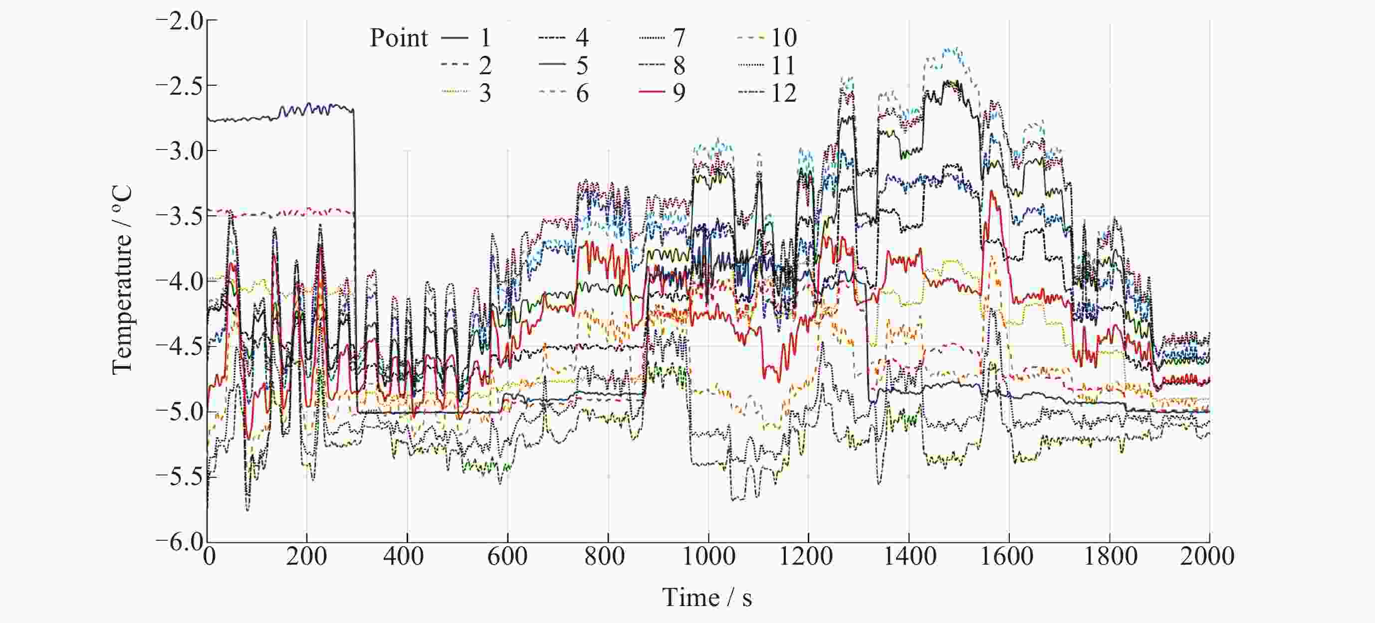 参数 温度条件 Tf = 218.15 K ($ - $55 ℃) Tmw = 230.65 K ($ - $42.5 ℃) Tg = 243.15 K ($ - $30 ℃) 密度ρ/ (kg·m–3) 0.043 9 0.042 0.039 4 动力黏度μ/ (Pa·s) 1.420×10–5 1.498×10–5 1.570×10–5 定压比热 Cp/ (J·kg–1·K–1) 1003.5 1003.5 1003.5 导热系数k/ (W·m–1·K–1) 0.0217 0.02238 0.02250 表 3 加热回路的布局与功率分配