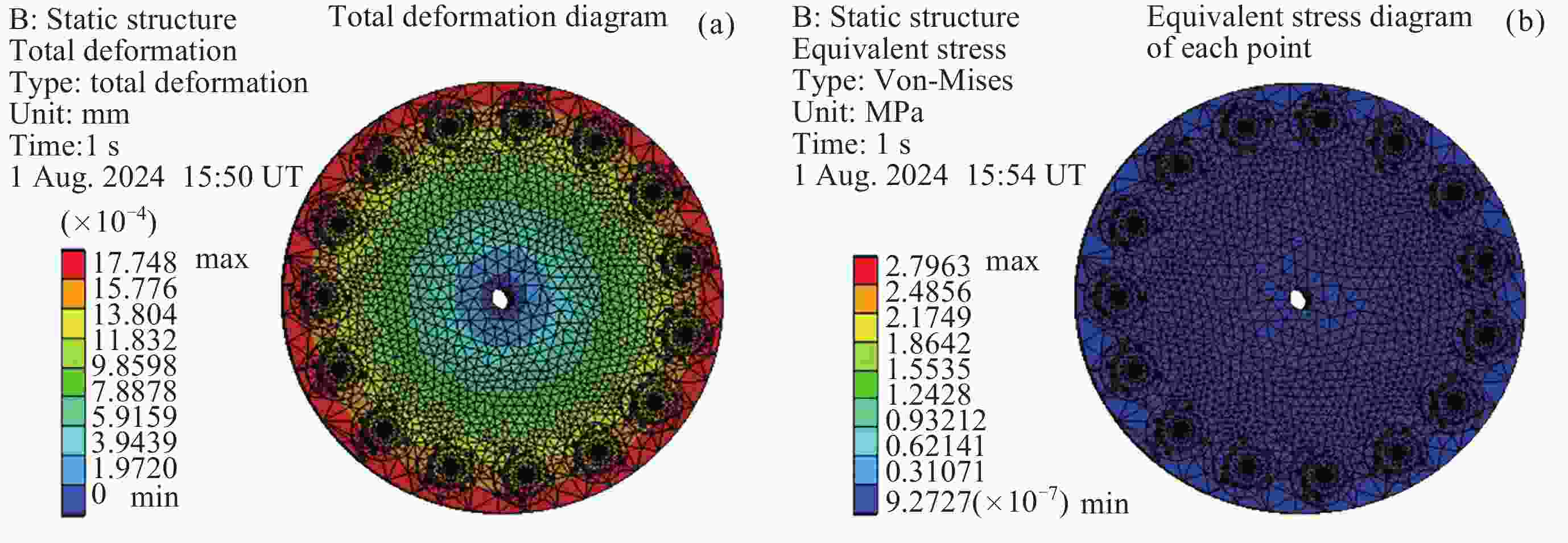 优化目标 星点盘厚度/mm 星点盘质量/kg 最大总变形/mm 最大等效应力/MPa 初始值 6.0000 0.7970 0.0018 2.7963 优化值 4.3773 0.5862 0.0019 2.9673 -