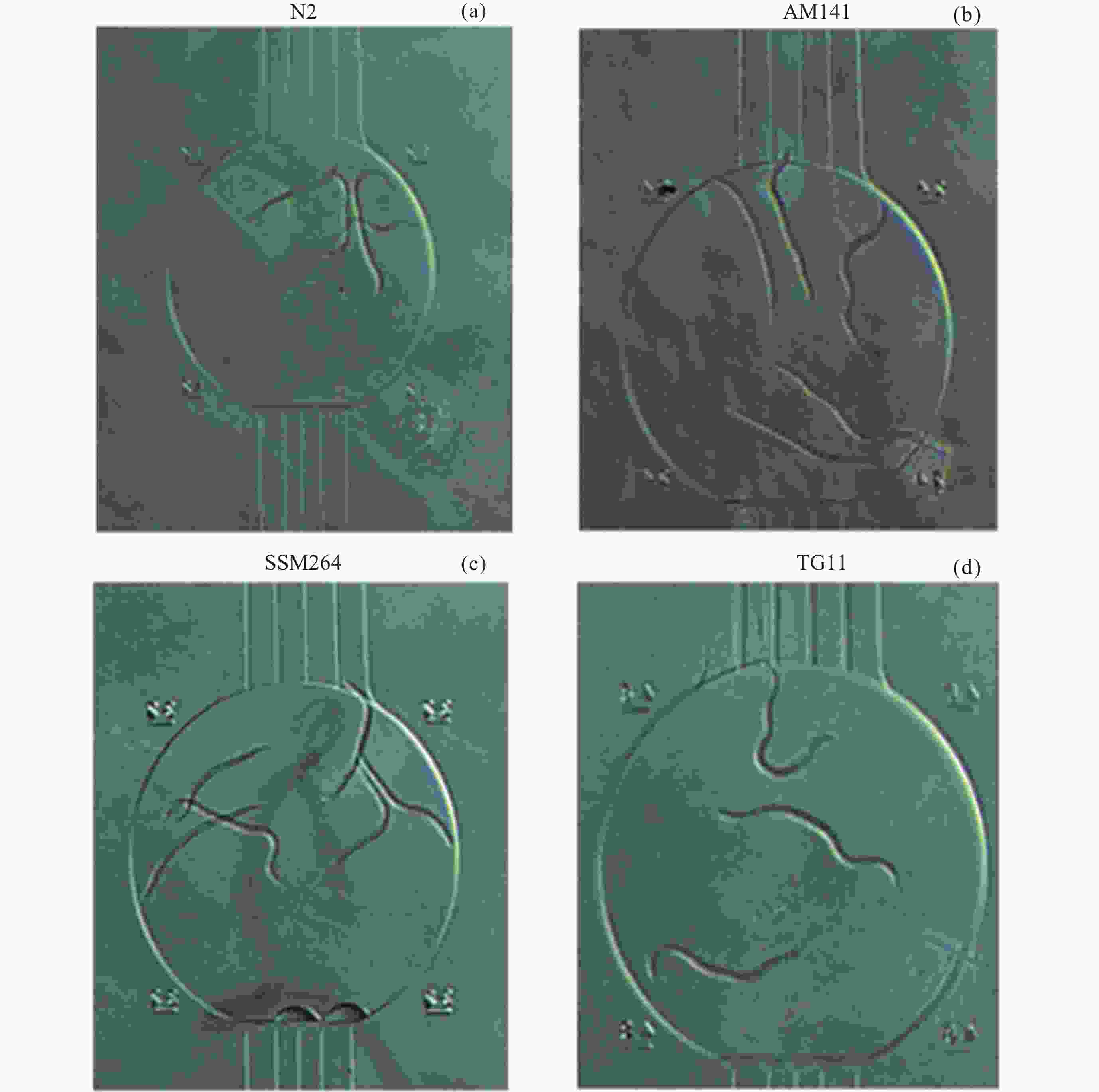 N>29μm132 26.48 51.72 2.22 138 25.76 41.23 1.47 144 26.17 54.63 2.46 150 27.54 40.87 1.27 156 27.18 22.48 0.52 表 6 验证芯片加样时线虫群体状态