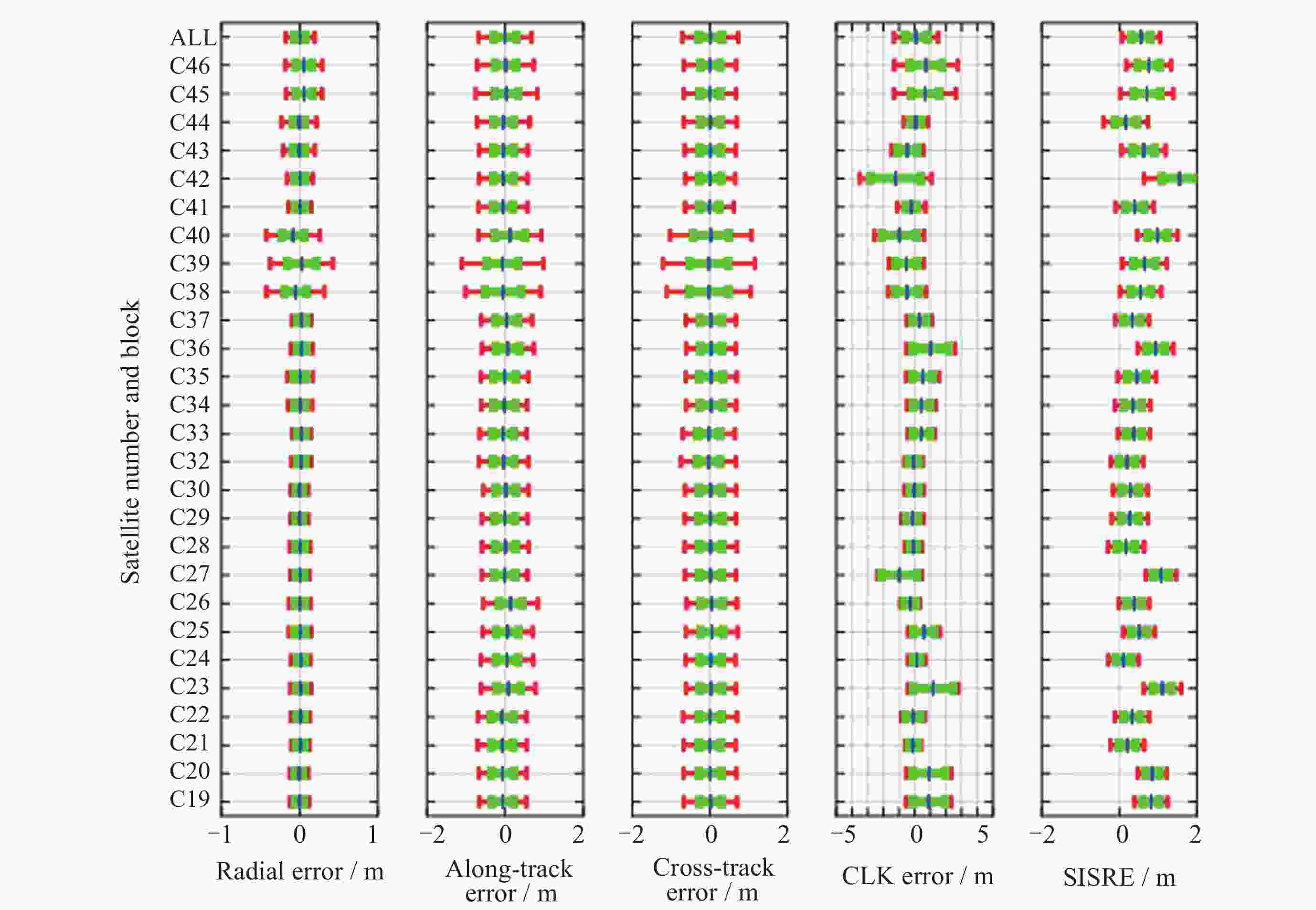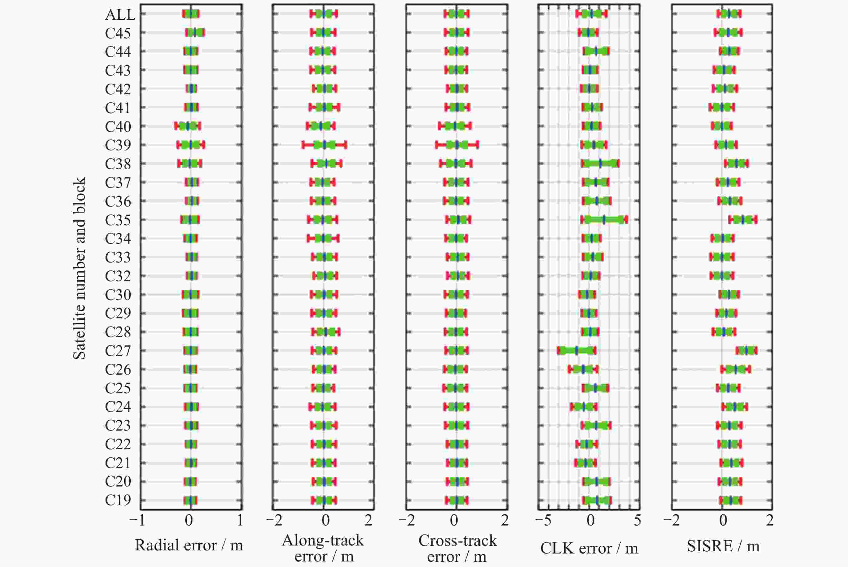 Table 3. BDS-3 orbit error, clock error and SISRE RMS 95% statistical precision based on iGMAS products in 2020―2025