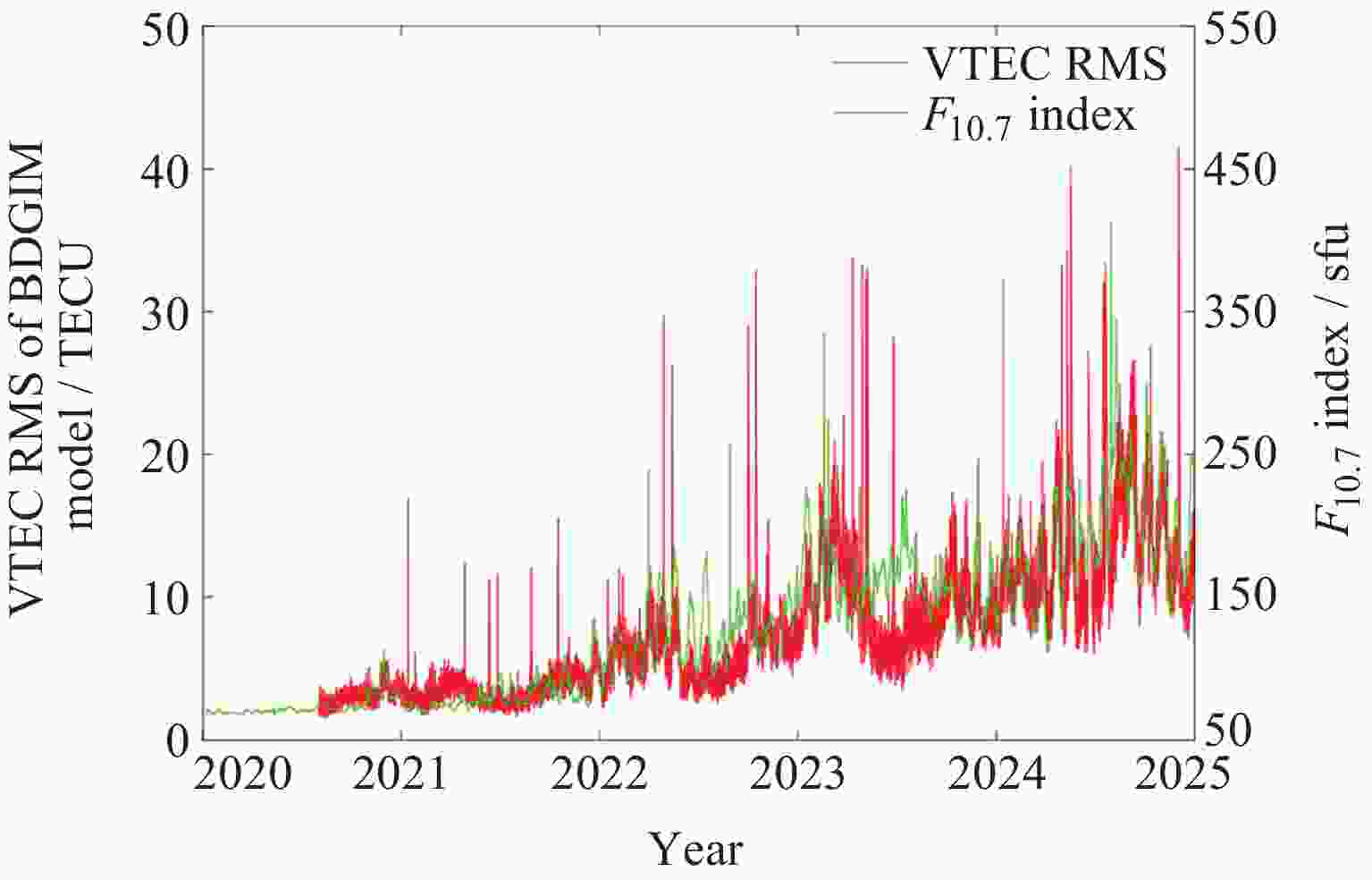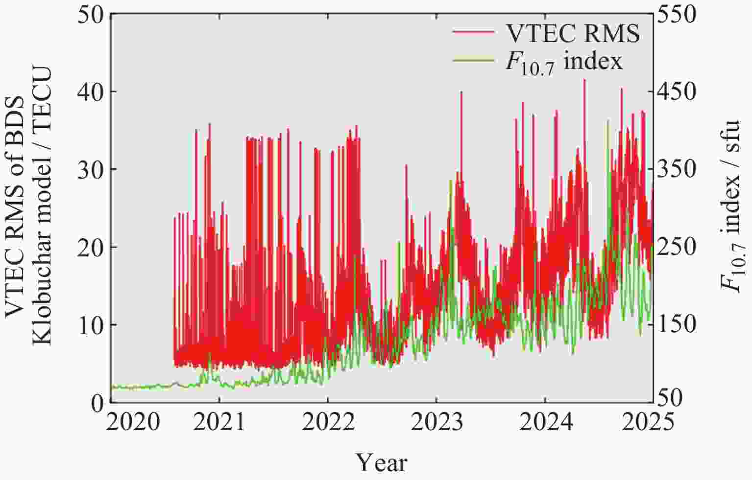Table 5. Mean, max and min RMS of VTEC for BDS Klobuchar and BDGIM models based on iGMAS products from 2020 to 2025