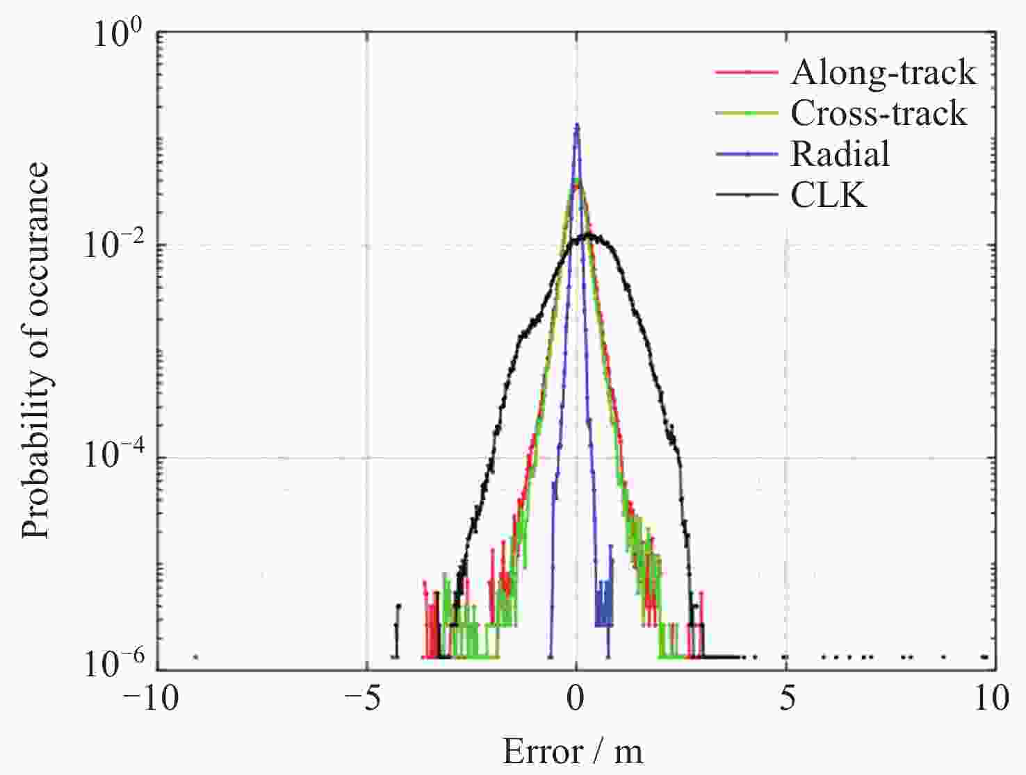 Year R/m A/m C/m CLK/m SISRE/m 2020 0.104 0.482 0.589 0.705 0.705 2021 0.096 0.502 0.601 0.572 0.580 2022 0.094 0.614 0.657 0.623 0.636 2023 0.097 0.645 0.631 0.584 0.668 2024 0.087 0.354 0.337 0.530 0.542 2025 0.080 0.351 0.364 0.540 0.549 表 3 以iGMAS产品为基准, BDS-3在2020-2025年的轨道误差、钟差误差、SISRE的RMS 95%统计精度