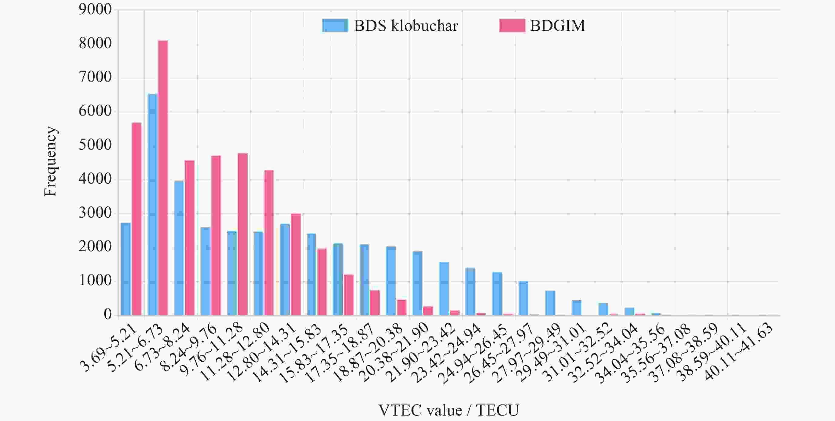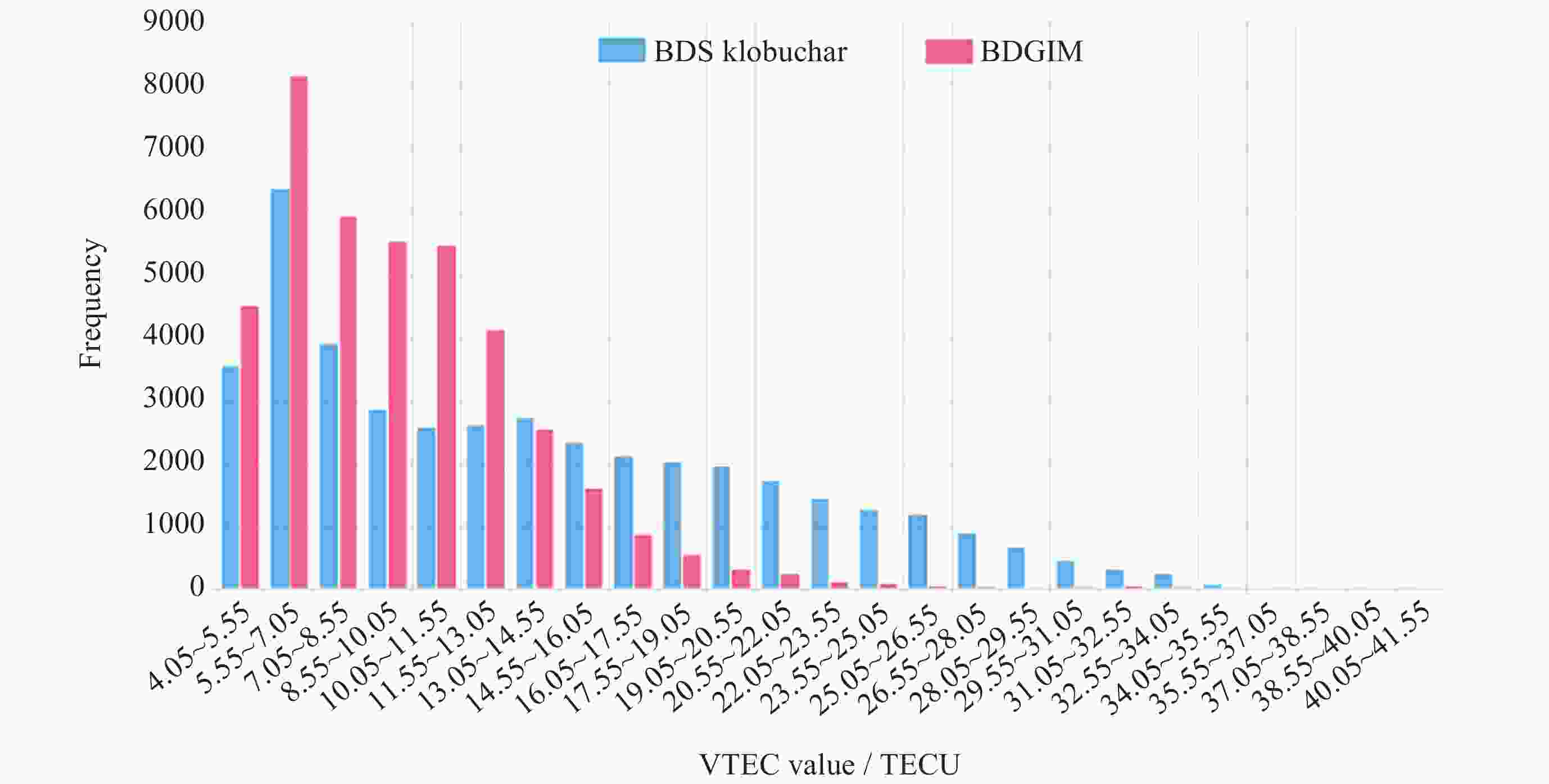 Figure  12.  BDS Klobuchar model and BDGIM model VTEC RMS histogram based on iGMAS products in 2020―2025