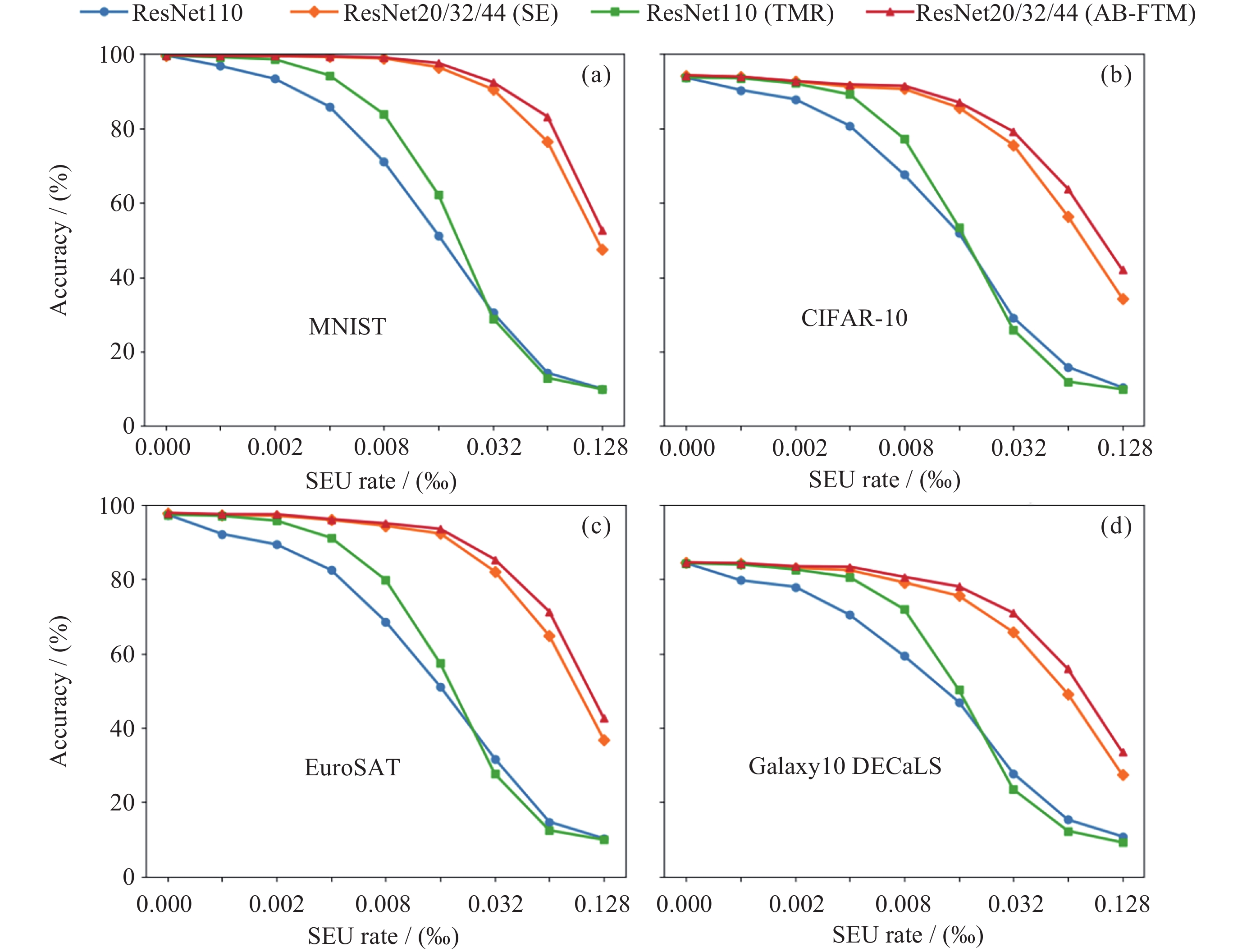 三模冗余ResNet110(TMR)99.6593.6897.3784.33