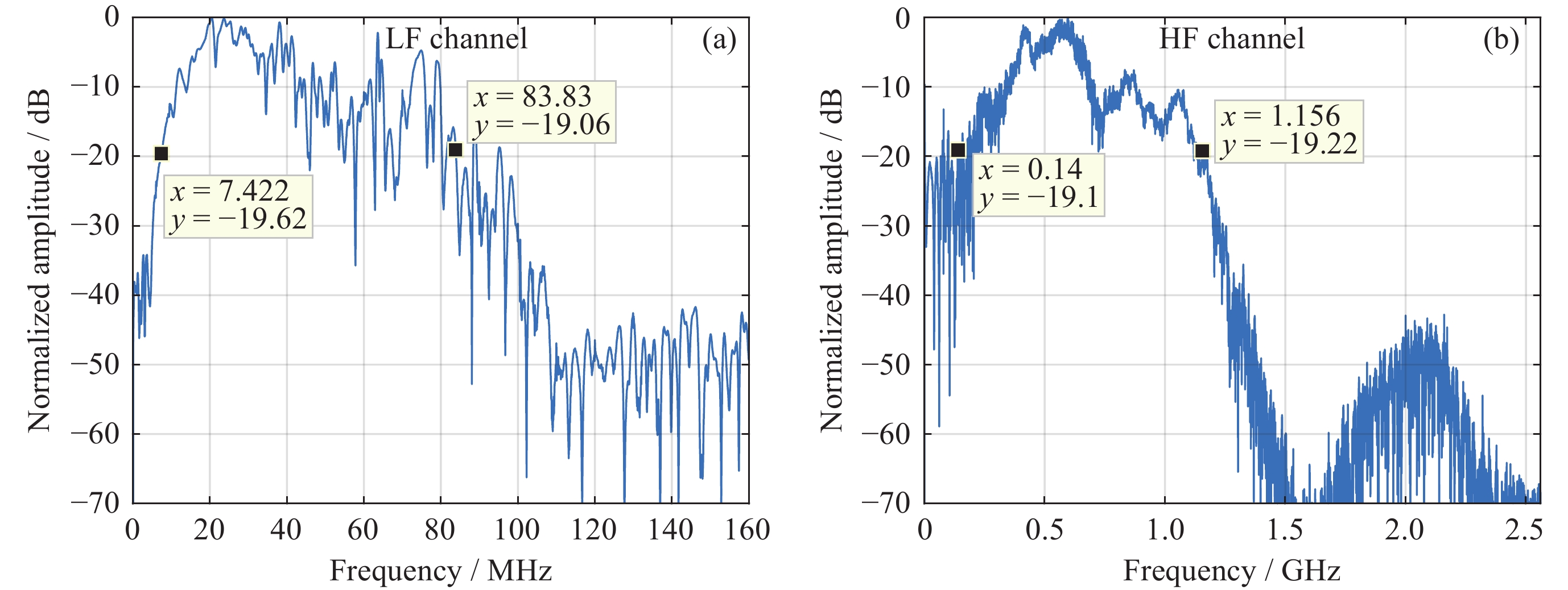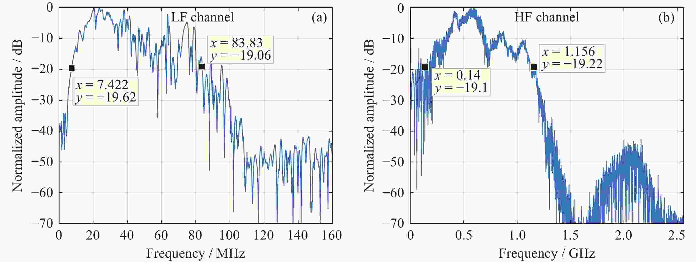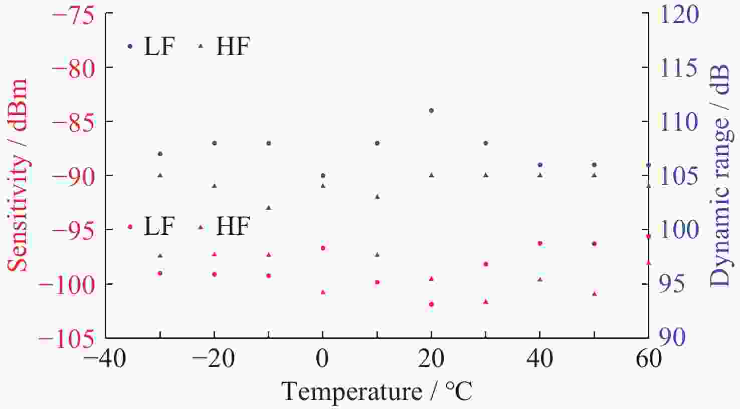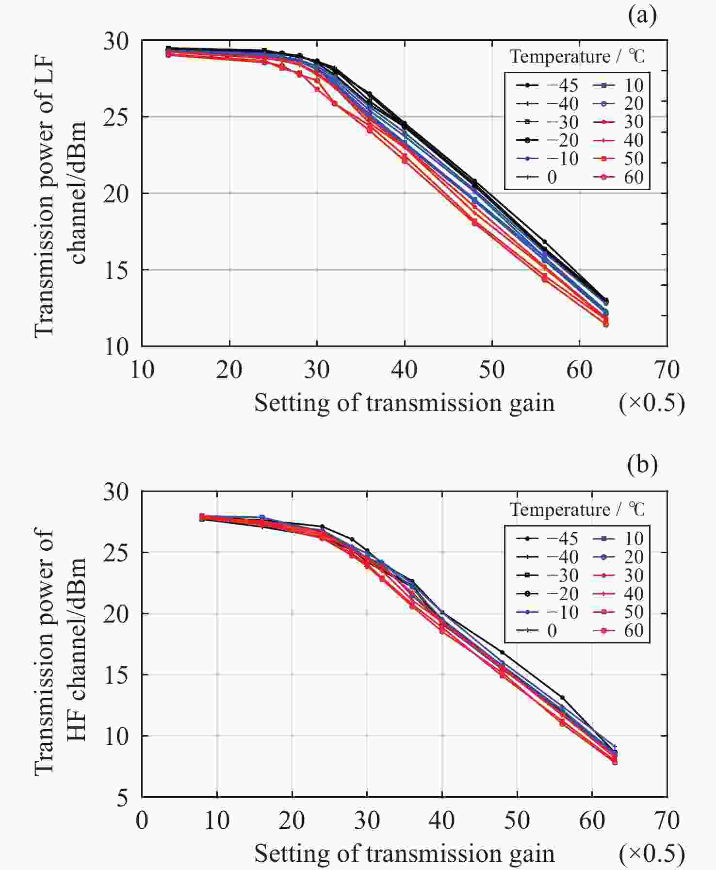No. Parameter Low-frequency channel High-frequency channel 1 Operating frequency/MHz 10~110 100~1500 2 Transmit power/W ≥0.2 ≥0.2 3 Receiver dynamic range/dB ≥80 ≥70 4 Receiver sensitivity/dBm ≤–80 ≤–70 5 Antenna polarization HH HH, HV 6 Thickness resolution Better than 2 m(εr=6.0) Better than 15 cm(εr=3.0) 7 Penetration depth/m ≥400(εr=6.0) ≥40(εr=3.0) 8 Design lifetime/a ≥8 -
