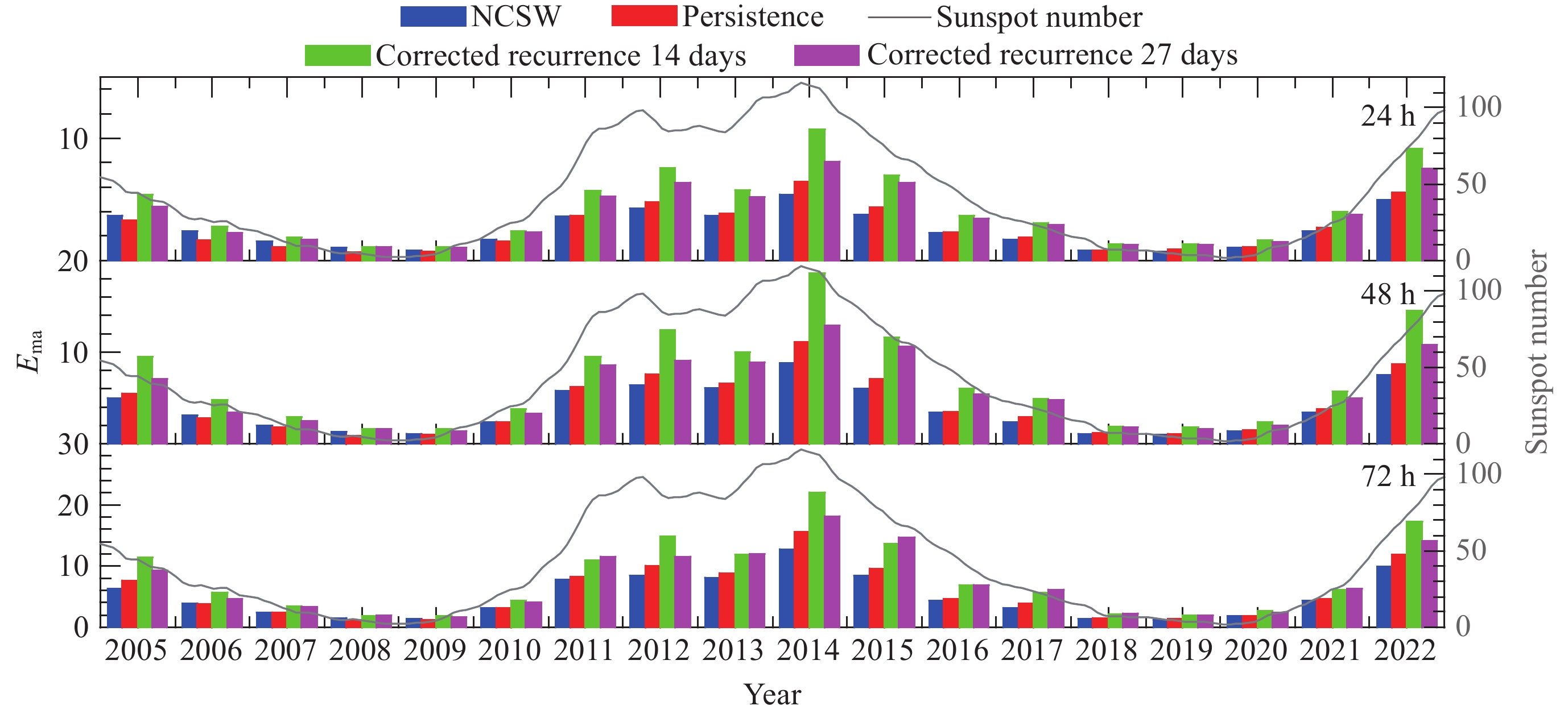 China Meteorological Administration. QX/T 295-2015 Verification methods for short-term space weather forecast[S]. Beijing: China Meteorological Press, 2015