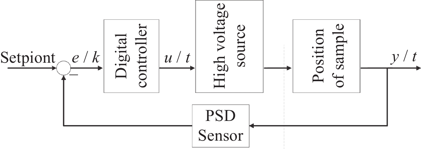 Figure  3.  Relationship between the sample position and the controlling voltage when sample position is in equilibrium