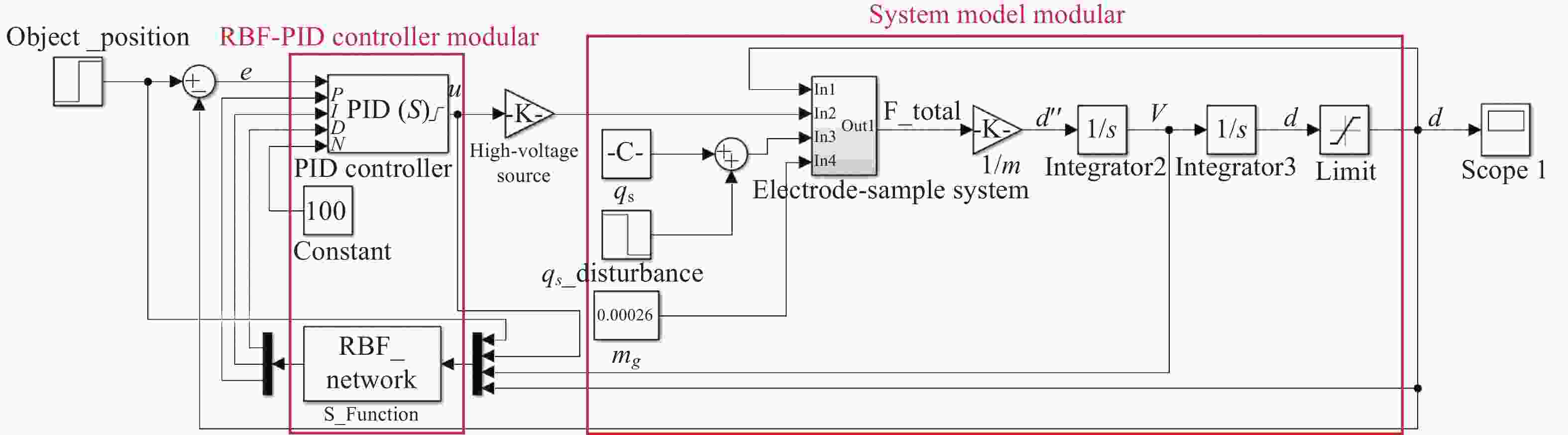 • 摘要: 静电悬浮位置控制系统具有非线性、时变性的特点,传统的控制方法不能有效抑制扰动的影响。针对该问题提出了一种神经网络与PID相结合的RBF-PID控制策略。以球形样品为例分析其受力情况,推导出静电悬浮位置控制系统的机理模型。搭建基于RBF-PID控制器的静电悬浮位置控制系统,并根据仿真结果实时在线调整控制参数。仿真结果表明,当样品带电量从10–9 C突变至3×10–9 C时,RBF-PID控制器只需0.12 s即可使样品达到稳定状态。实验结果表明,当样品处于加热状态时,实时调整参数后系统的平均绝对误差为0.0416 mm,控制效果比传统PID控制策略提高了70%。所提出的控制方法辨识精度高,具有比传统PID方法更强的鲁棒性和稳定性。