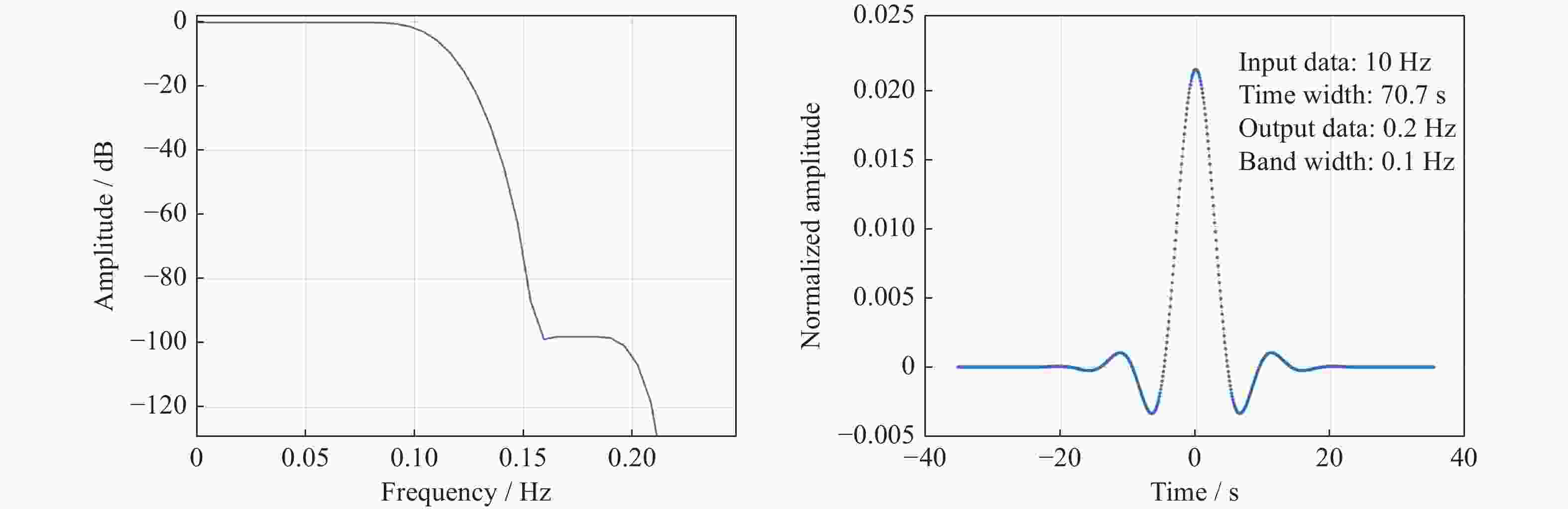 • 摘要: 在卫星时频传递、矢量测量技术领域,有效观测数据的高精度滤波处理十分重要,其基本要求是在保留有效观测信息的同时能够降低噪声干扰,实现原始信息的高效、高精度传递。以中国地球重力场测量卫星高精度测距系统的工程研制为背景,为实现高频噪声抑制、保留低频重力场信息,基于对FIR滤波器结构的优化和窗函数的改进,提出了一种对10 Hz采样率的原始测距数据降速率、降噪滤波的算法。相比其他类似算法,所提方法同时具备降速滤波和差分运算两种功能,噪声抑制抑制度优于44%,且频率截止特性陡峭,第一旁瓣抑制度达到–94 dB。该算法在提高测距精度、充分保留重力场信息的同时,实现了地面数据后处理流程的简化,为微波测量系统、激光测量系统的数据处理提供了一种优选方案。