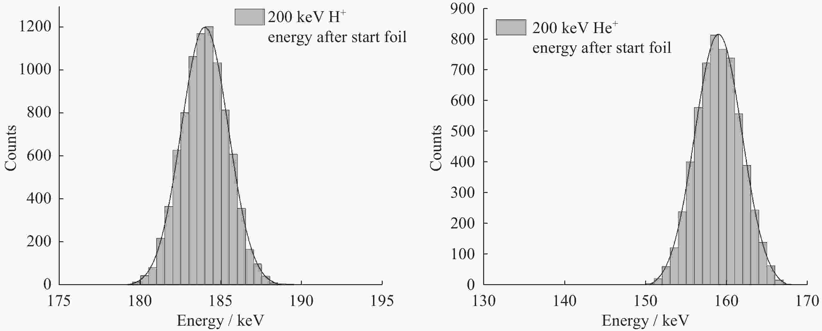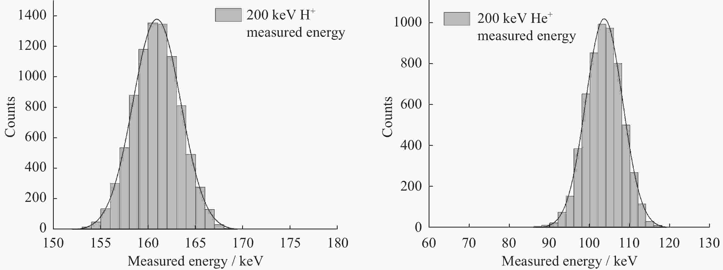 质量分辨率 $ {\sigma }_{m}/m\approx 16.65\mathrm{\%} $,@200 keV H+