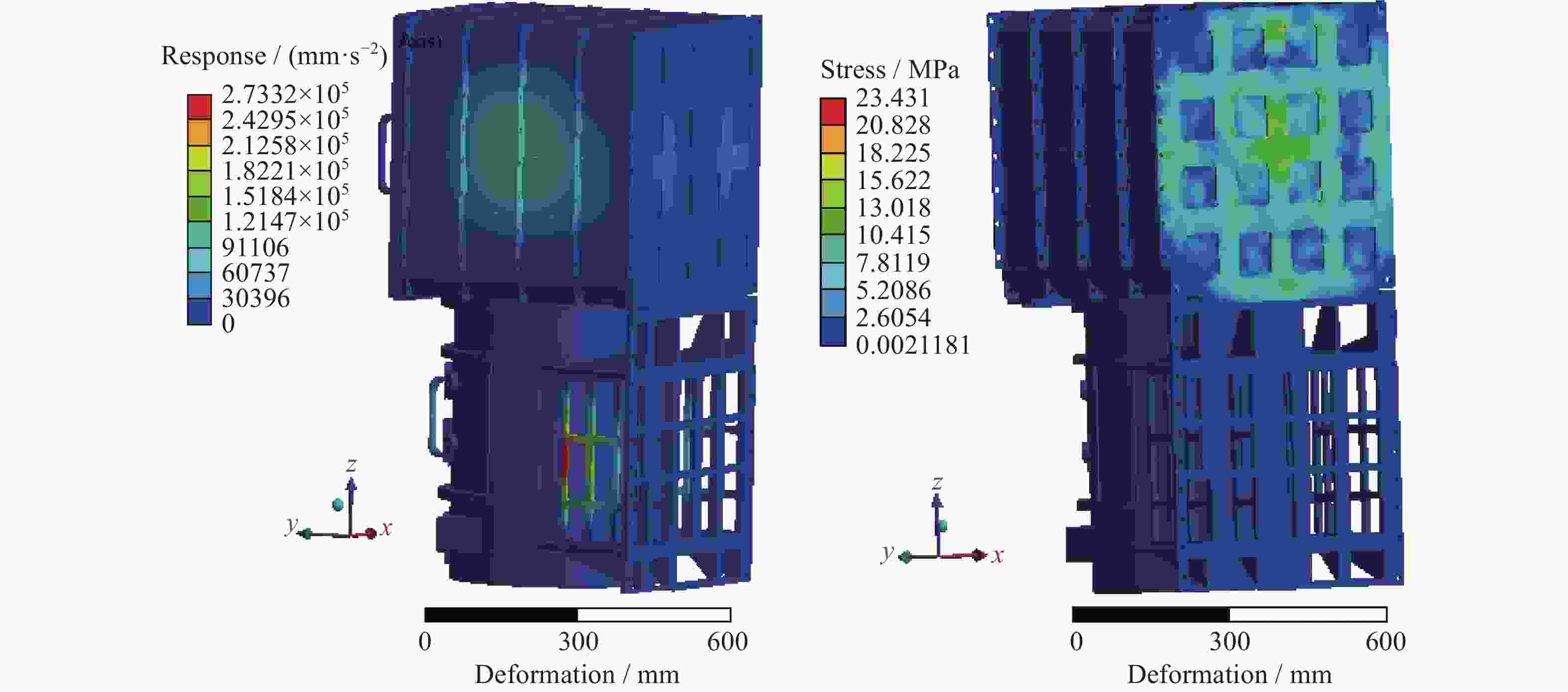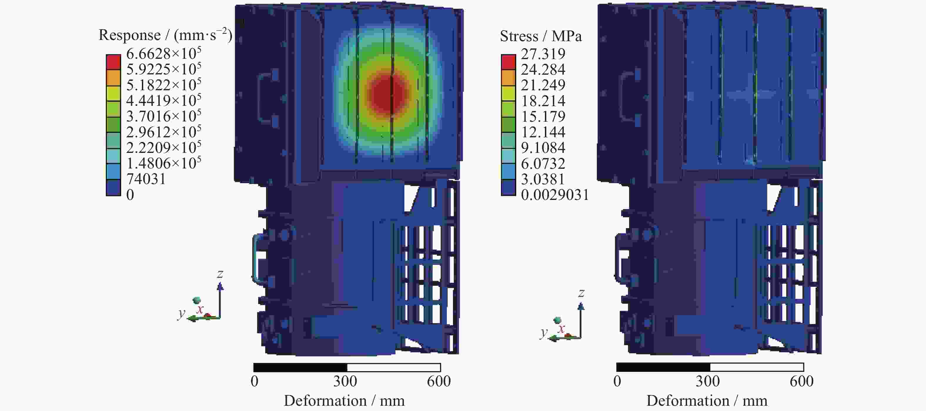 阶数 第1阶 第2阶 第3阶 第4阶 第5阶 第6阶 频率/Hz 276.4 357.8 409.2 467.9 567.5 574.1 表 5 加速度功率谱密度 (总均方根加速度值9.6 ${\boldsymbol{g}} $,每向试验持续时间180 s )