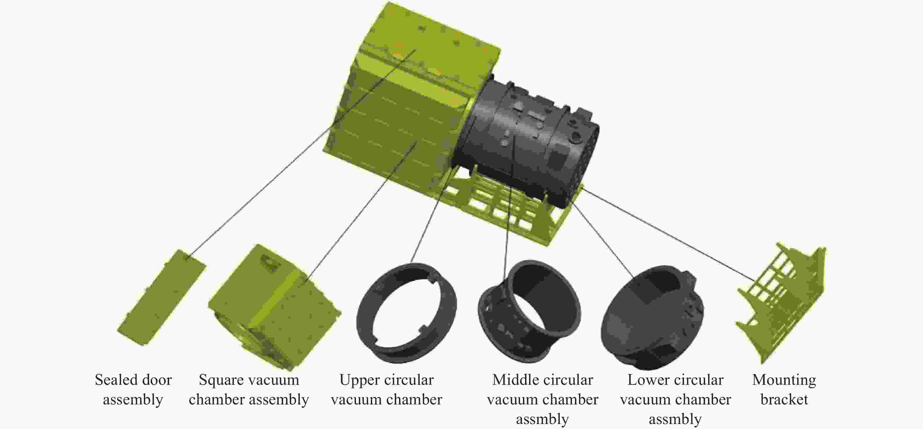 摘要: 中国空间站高温材料科学实验系统能够在轨进行多种材料的微重力高温加热实验,其关键组件真空室是可实现密封的压力容器,为实验插件提供机械、真空、氮气、废气排放、供电、控制、冷却等接口,支持实验插件完成相关功能。本文依据承压范围、漏率等设计技术指标进行真空室的结构设计和力学分析。真空室采用分段式结构,由方形真空室、密封门、圆形真空室、安装支架等组件依次连接组成,连接结构处使用密封圈。通过真空室的承压分析、模态分析、随机响应分析和力学试验,校核了真空室的强度、刚度及随机振动响应特性,验证了真空室设计的安全性和可靠性,其能够满足发射及在轨工作要求。Abstract: The Chinese Space Station High Temperature Material Science Experiment System is capable of conducting microgravity high temperature heating experiments of multiple materials types in orbit. The vacuum chamber, one of the key components, is a pressure vessel that can be sealed. It is equipped with interfaces for the experiment inserts such as mechanical, vacuum, nitrogen, exhaust gas emission, power supply, control and cooling. In this paper, the structure design and analysis of the vacuum chamber is based on the technical indicators such as pressure-bearing range and leakage rate. The vacuum chamber adopts a sectional structure, which consists of a square vacuum chamber assembly, a sealed door assembly, a circular vacuum chamber assembly, a mounting bracket, etc. Seals are used at the connection positions. The strength, stiffness and random vibration response of the vacuum chamber structure were checked through pressure analysis, modal analysis, random response analysis and mechanical vibration test. The results verified the safety and reliability of the vacuum chamber design, which can meet the launch and in-orbit operational requirements.