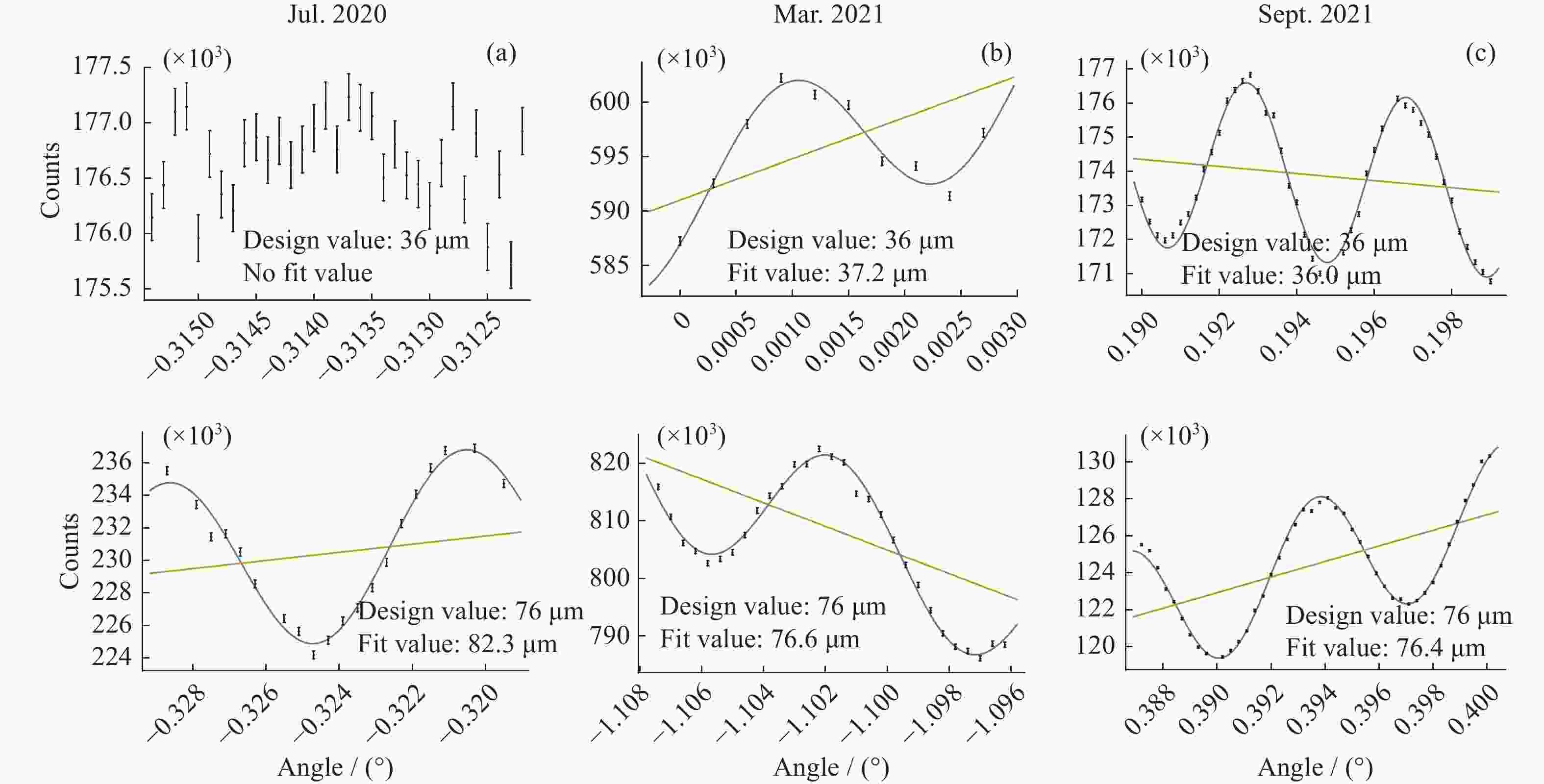 图 11 三次典型的束流测试结果对比。(a) 利用513所X射线系统对HXI鉴定件的测试结果;(b) 利用新采购的X光机对HXI鉴定件的重新测试结果;(c) 利用本调制功能定标装置对HXI飞行件的测试结果