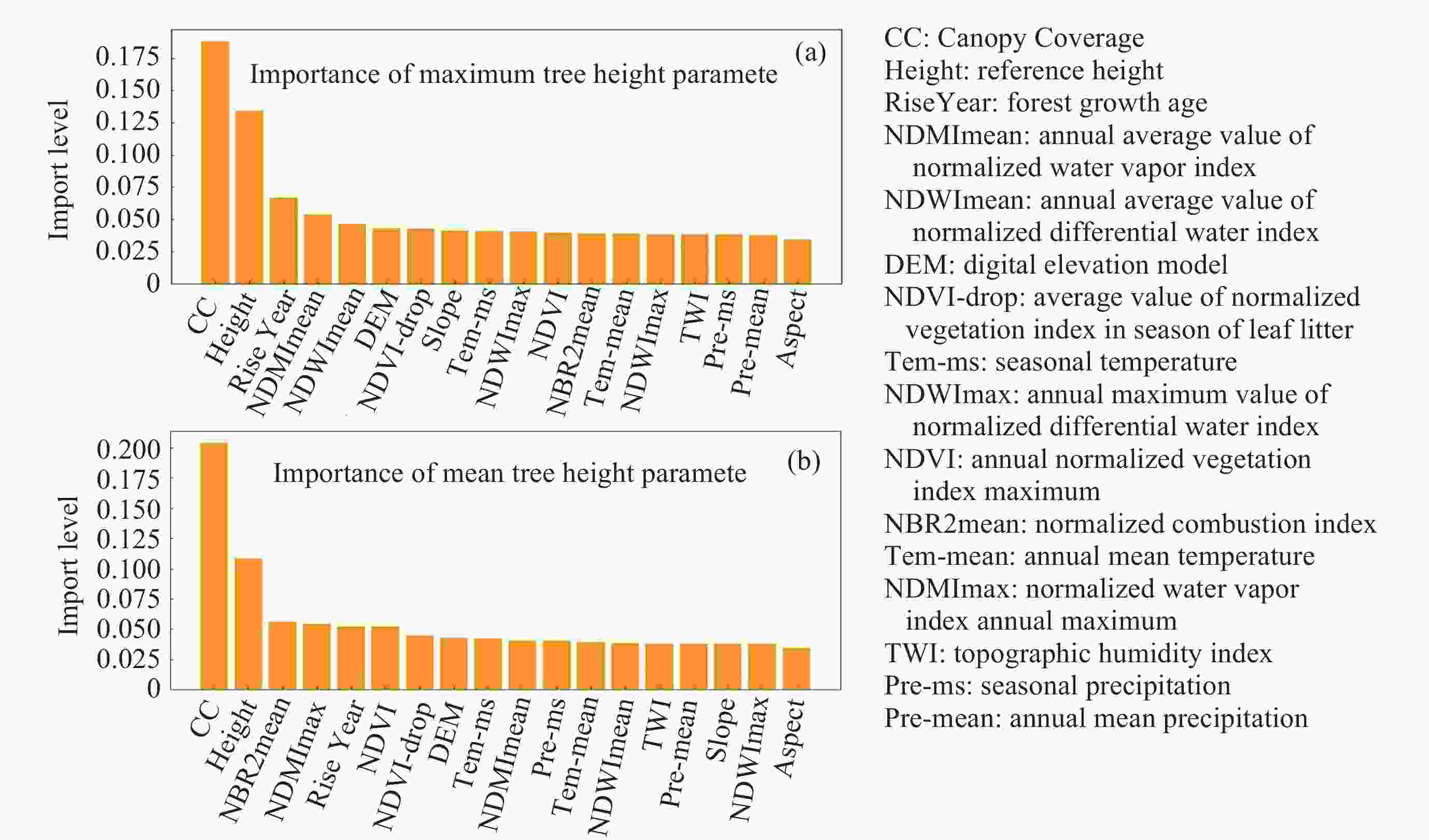 Figure  10.  Fitting results of random forest model. (a) Maximum canopy height fitting results, (b) average canopy height fitting results