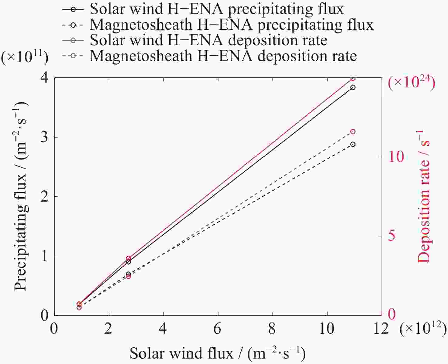 (×1027) /(eV·s–1)Case 1 无 2.11 0.84 1.06 1.89 0.83 0.57 Case 2 位于子夜 2.06 0.80 1.01 1.59 0.70 0.47 Case 3 位于正午 1.87 0.72 0.91 1.33 0.50 0.21 表 4 不同太阳风条件下沉降H-ENA物理量统计