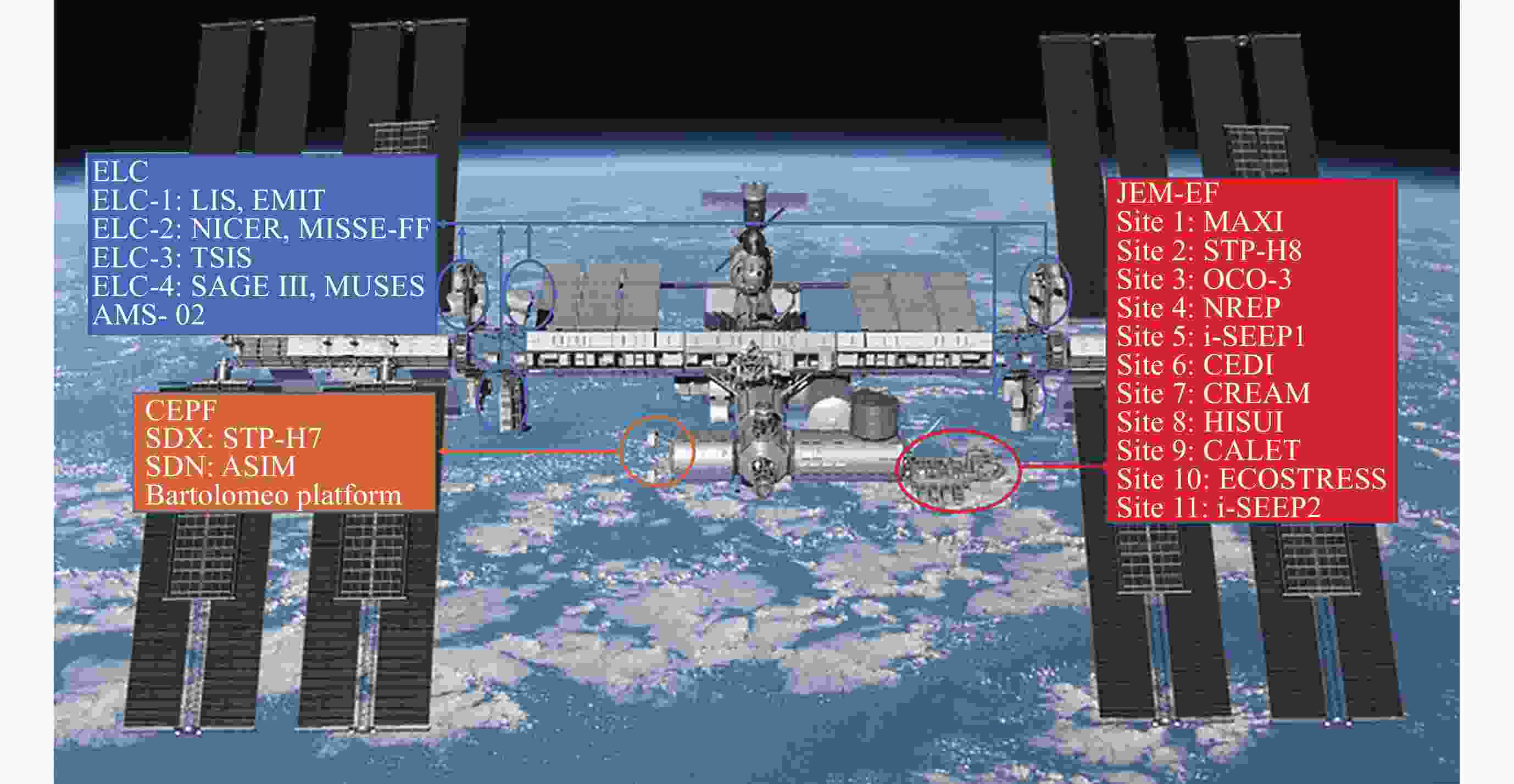 [1] GAO M, ZHAO G H, GU Y D. Recent progress in space science and applications of China’s Space Station in 2020-2022[J]. Chinese Journal of Space Science, 2022, 42(4): 503-510 doi: 10.11728/cjss2022.04.yg29 [2] CHINA Manned Space Agency. Scientific Experiment Resource Manual of China’s Space Station[R]. Beijing: China Ma-nned Space Agency, 2019 [3] NAHAY E. Space Station payload operations-The challenge of segmented planning in a continuous operations environme-nt[C]//Space Programs and Technologies Conference. Huntsvile: AIAA, 1995: 3536 [4] COOLEY V M. Unique offerings of the ISS as an Earth observing platform[C]//International Astronautical Congress. Bei-jing: IAF, 2013 [5] THIBEAULT S A, COOKE S A, ASHE M P, et al. MISSE-X: an ISS external platform for space environmental studies in the post-shuttle era[C]//2011 Aerospace Conference. Big Sky, MT, USA: IEEE, 2011: 1-13 [6] SOROKIN I V, KONOSHENKO V P, MARKOV A V. Research potential of the ISS Nauka module[J]. Acta Astronautica, 2022, 198: 777-784 doi: 10.1016/j.actaastro.2022.01.044 [7] JOHNSON Space Center. External Payloads Proposer’S Guide to the International Space Station[R]. Houston: Johnson S-pace Center, 2016 [8] CORLEY B, STEIMLE C. New Bartolomeo payload platform on the International Space Station[C]//AIAA SCITECH 20-22 Forum. San Diego: AIAA, 2022 [9] KAWASAKI K. Overview of JEM-EF on ISS[C]//Proceedings of the RIKEN Symposium. Saitama: JAXA, 2008: 1-3 [10] BACHOLLE S, BARRILLON P, BATTISTI M, et al. Mini-EUSO mission to study Earth UV emissions on board the ISS[J]. The Astrophysical Journal Supplement Series, 2021, 253(2): 36 doi: 10.3847/1538-4365/abd93d [11] BECKETT K. UrtheCast second-generation EARTH observation sensors[J]. The International Archives of the Photogram-metry, Remote Sensing and Spatial Information Sciences, 2015, XL-7/W3: 1069-1073 [12] BERGER T, HAJEK M, BILSKI P, et al. Cosmic radiation exposure of biological test systems during the EXPOSE-R mis-sion[J]. International Journal of Astrobiology, 2015, 14(1): 27-32 doi: 10.1017/S1473550414000548 [13] PIKE S N, NEGORO H, TOMSICK J A, et al. MAXI and NuSTAR observations of the faint X-ray transient MAXI J1848015 in the GLIMPSE-C01 Cluster[J]. The Astrophysical Journal, 2022, 927(2): 190 doi: 10.3847/1538-4357/ac5258 [14] ZUCCON P. AMS-02 experiment: status and perspectives[J]. Nuclear and Particle Physics Proceedings, 2019, 306-308: 74-79 doi: 10.1016/j.nuclphysbps.2019.07.011 [15] ASAOKA Y, OZAWA S, TORII S, et al. On-orbit operations and offline data processing of CALET onboard the ISS[J]. A-stroparticle Physics, 2018, 100: 29-37 doi: 10.1016/j.astropartphys.2018.02.010 [16] ZHANG H G, ANGELASZEK D, COPLEY M, et al. Performance of the ISS-CREAM calorimeter in a calibration beam test[J]. Astroparticle Physics, 2021, 130: 102583 doi: 10.1016/j.astropartphys.2021.102583 [17] ARZOUMANIAN Z, GENDREAU K C, BAKER C L, et al. The Neutron Star Interior Composition Explorer (NICER): mission definition[C]//Space Telescopes and Instrumentation 2014: Ultraviolet to Gamma Ray. Montréal, Quebec, Canada: SPIE, 2014: 579-587 [18] BROWN P, ENGELMANN A. TSIS experiences with ISS Jitter from inception to On-Orbit Operation[C]//Annual Guida-nce and Control Conference. Breckenridge, Colorado, USA: AAS, 2019 [19] OBARA T. Space environment data acquisition with KIBO exposed facility on the International Space Station (ISS)[J]. El-ectronics Communications in Japan, 2012, 95(9): 10-16 [20] MARIEN G, JACOBS C, MICHEL A, et al. SOLAR, 9 years of operations as external payload on the ISS: The technical challenges overcome[C]//2018 SpaceOps Conference. Marseille: AIAA, 2018 [21] SAKAIZAWA D, MITSUHAHI R, MUROOKA J, et al. Current status of the ISS-vegetation lidar Mission-MOLI[C]//IG-ARSS 2018-2018 IEEE International Geoscience and Remote Sensing Symposium. Valencia: IEEE, 2018: 1861-1864 [22] GUZMÁN R, DAVIS S, OCERIN E, et al. In-Orbit demonstration of the iSIM-170 optical payload onboard the ISS[C]//S-mall Satellite Conference. Logan: Utah State University, 2020 [23] BLAKESLEE R J, LANG T J, KOSHAK W J, et al. Three years of the Lightning Imaging Sensor on-board the Internatio-nal Space Station: expanded global coverage and enhanced applications[J]. Journal of Geophysical Research: Atmospher-es, 2020, 125(16): e2020JD032918 doi: 10.1029/2020JD032918 [24] LILES K A K, AMUNDSEN R M, DAVIS W T, et al. Thermal design and analysis of an ISS science payload-SAGE III on ISS[C]//47th International Conference on Environmental Systems. Charleston: ICES, 2017 [25] MÜLLER R, AVBELJ J, CARMONA E, et al. The new hyperspectral sensor DESIS on the multi-payload platform MUS-ES installed on the ISS[J]. The International Archives of the Photogrammetry, Remote Sensing and Spatial Information Sciences, 2016, XLI-B1: 461-467 doi: 10.5194/isprs-archives-XLI-B1-461-2016 [26] NEUBERT T, ØSTGAARD N, REGLERO V, et al. The ASIM mission on the International Space Station[J]. Space Scien-ce Reviews, 2019, 215(2): 26 doi: 10.1007/s11214-019-0592-z [27] YELAMANCHILI A, CHIEN S, CAWSE-NICHOLSON K, et al. Automated policy-based scheduling for the ECOSTRE-SS mission[C]//Earth Science Technology Forum. Pasadena: NASA, 2019 [28] DUBAYAH R, BLAIR J B, GOETZ S, et al. The Global Ecosystem Dynamics Investigation: High-resolution laser ranging of the Earth’s forests and topography[J]. Science of remote sensing, 2020, 1: 100002 doi: 10.1016/j.srs.2020.100002 [29] BASILIO R R, BENNETT M W, ELDERING A, et al. Orbiting Carbon Observatory-3 (OCO-3), remote sensing from the International Space Station (ISS)[C]//Sensors, Systems, and Next-Generation Satellites XXIII. Strasbourg, France: SPIE, 2019, 11151: 42-55 [30] MATSUNAGA T, IWASAKI A, TACHIKAWA T, et al. Hyperspectral Imager Suite (HISUI): its launch and current status[C]//IGARSS 2020-2020 IEEE International Geoscience and Remote Sensing Symposium. Waikoloa: IEEE, 2020: 3272-3273 [31] GREEN R O. The NASA Earth venture instrument, Earth surface Mineral dust sour