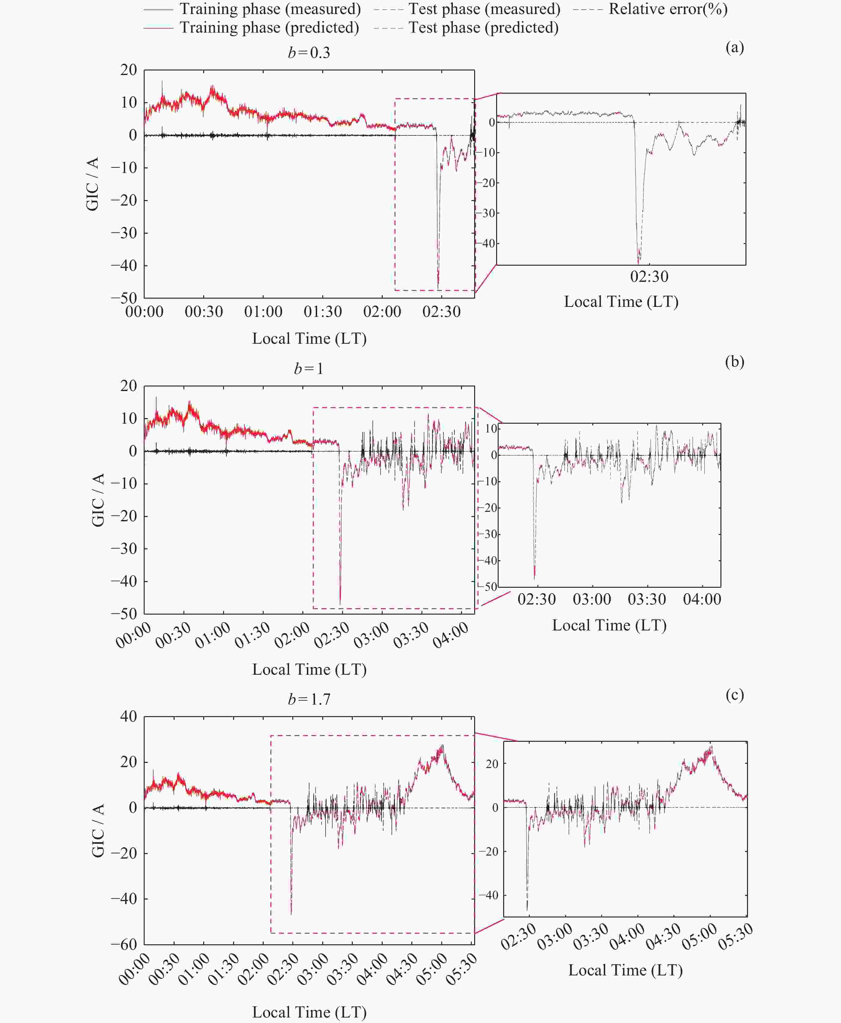 训练集长度 测试精度 训练精度 CP PPTS(γ) MAE RMSE MAE RMSE b=0.3 0.02563 0.1223 0.0269 0.2101 0.9689 3.63% b=1 0.0201 0.1025 0.0209 0.1767 0.9926 8.08% b=1.7 0.0212 0.1114 0.0254 0.1960 0.9765 9.22% 表 2 4种模型GIC预测评价指标