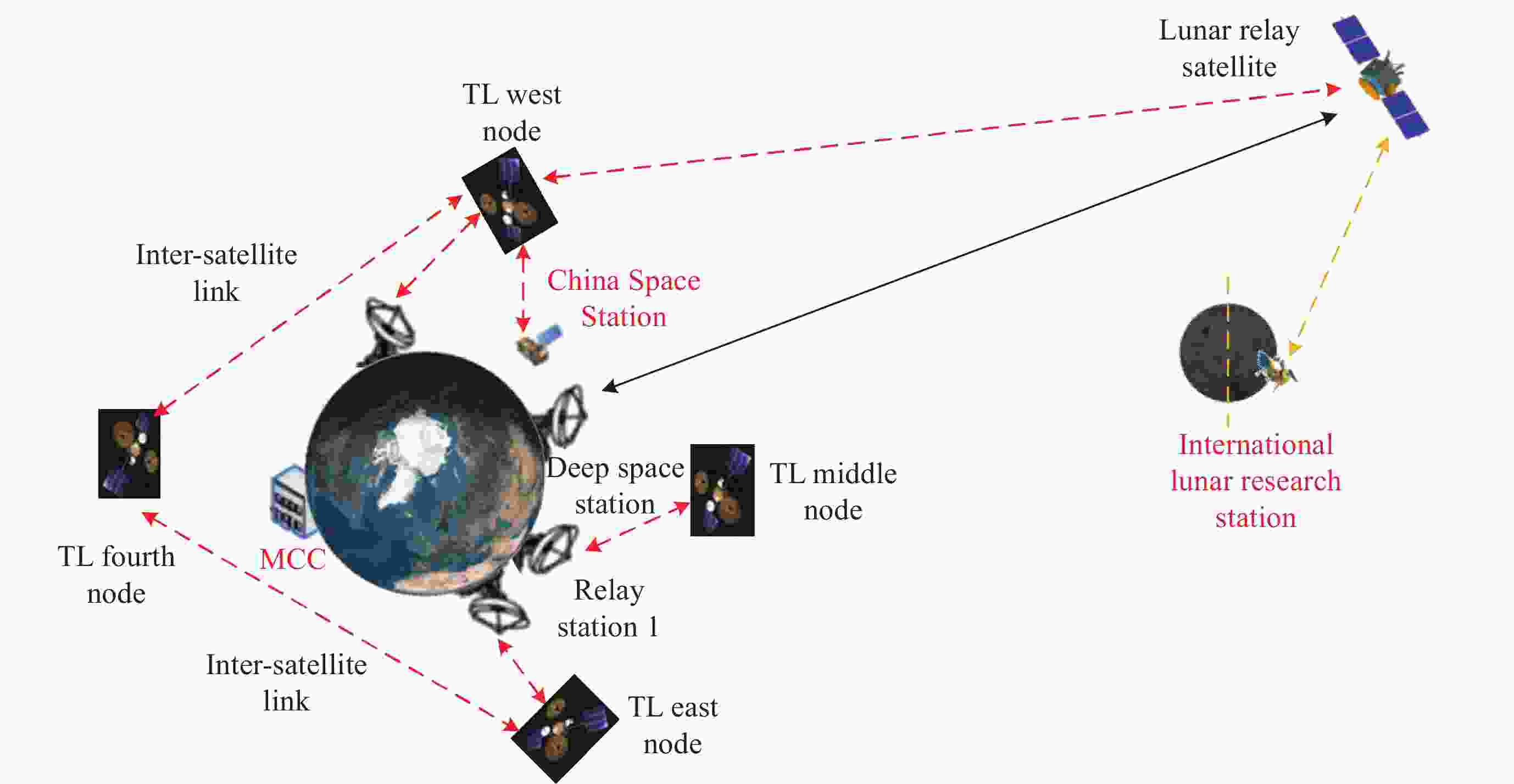 10 Mbit⋅s–1高低数传速率按需传输, 更好地满足各类用户需求 同时服务能力 基本一天线跟踪一目标. 同时服务用户数较少 一颗天链星含对天、对地至少两副天线, 跟踪多目标的能力优于深空站. 同时服务用户数较多 两系统结合, 同时服务深空用户数多 系统融合 无 可进一步促进中国地基测控网、天基测控网和深空测控网的融合创新 性价比 新建深空站耗资大, 功能相对单一, 性价比较弱 后续天链、鹊桥中继卫星载荷一体化改造, 系统综合利用, 性价比高 性价比高 表 4 两种系统性能比较(四节点天链星系统)