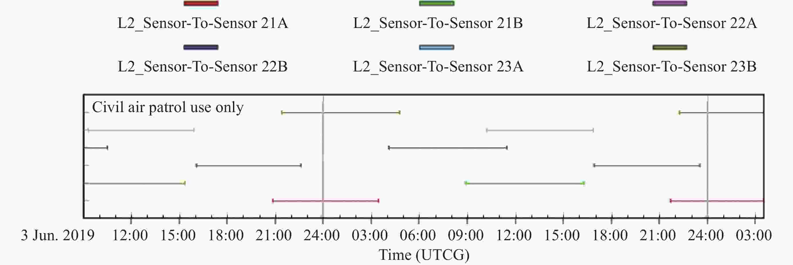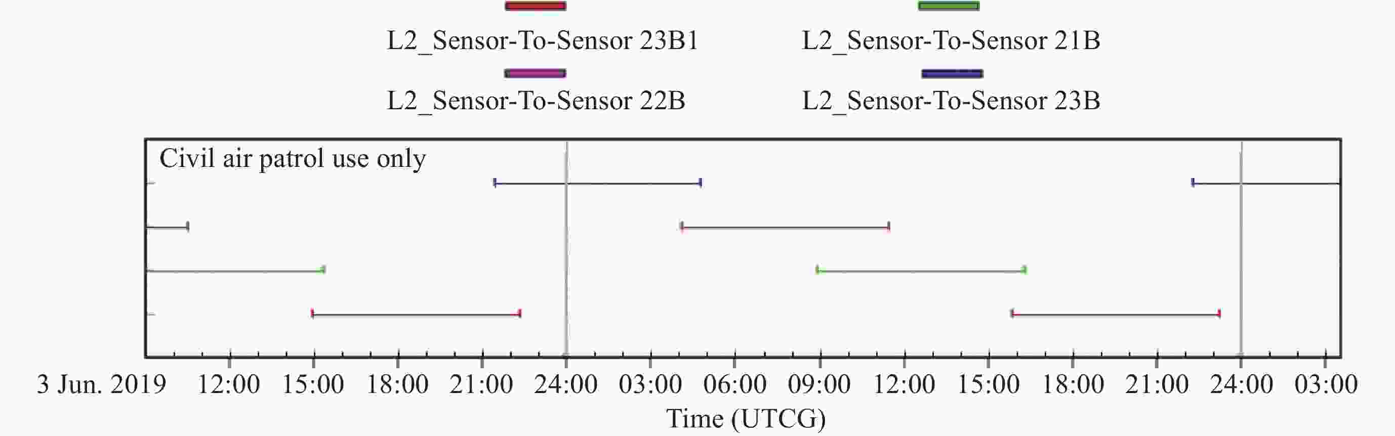 天链星 当前在轨 加装对天载荷(三节点) 加装对天载荷(四节点) 星间天线 对地 对地+对天 仅对天 仅对天 假定天线转动范围 ±45°圆锥角 ±45°, ±60°圆