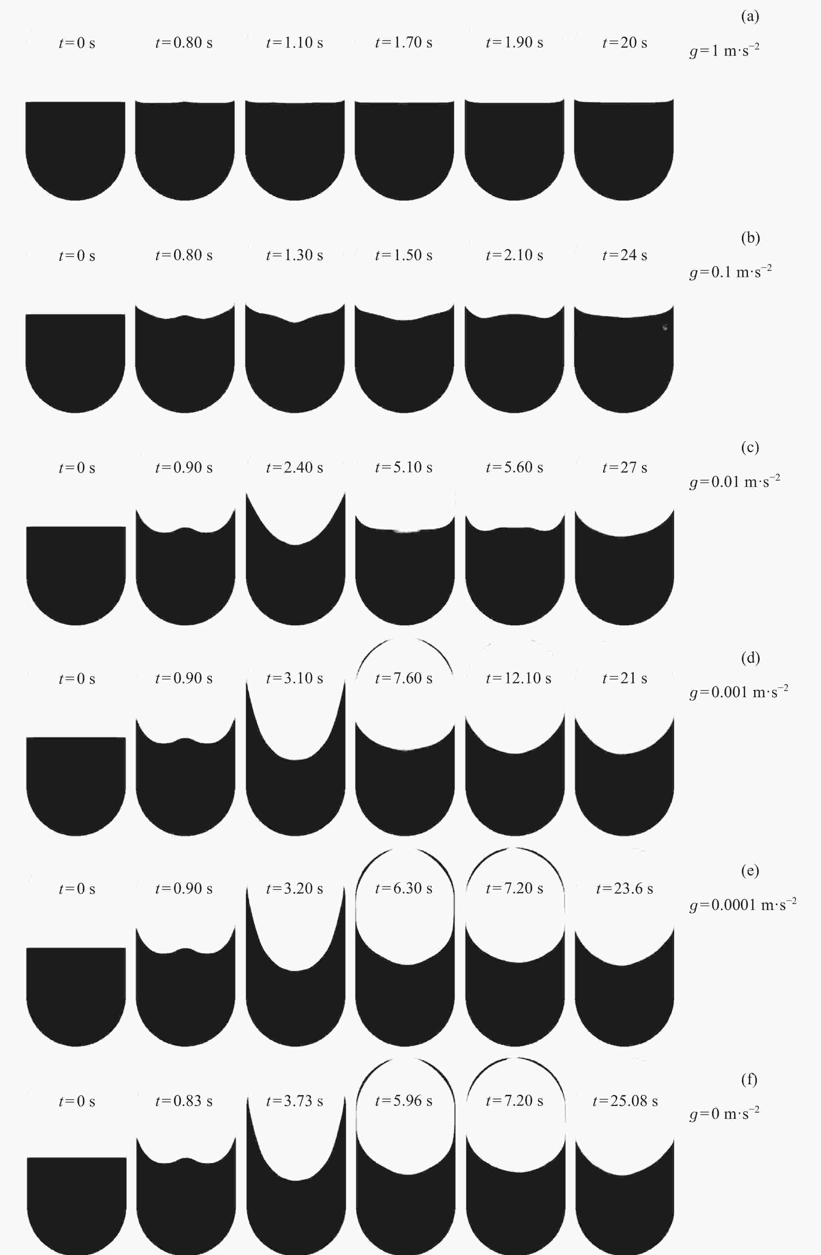 图  18  零重力下qw = 0 W⋅m–2时贮箱内气液相交界面形状的演化过程