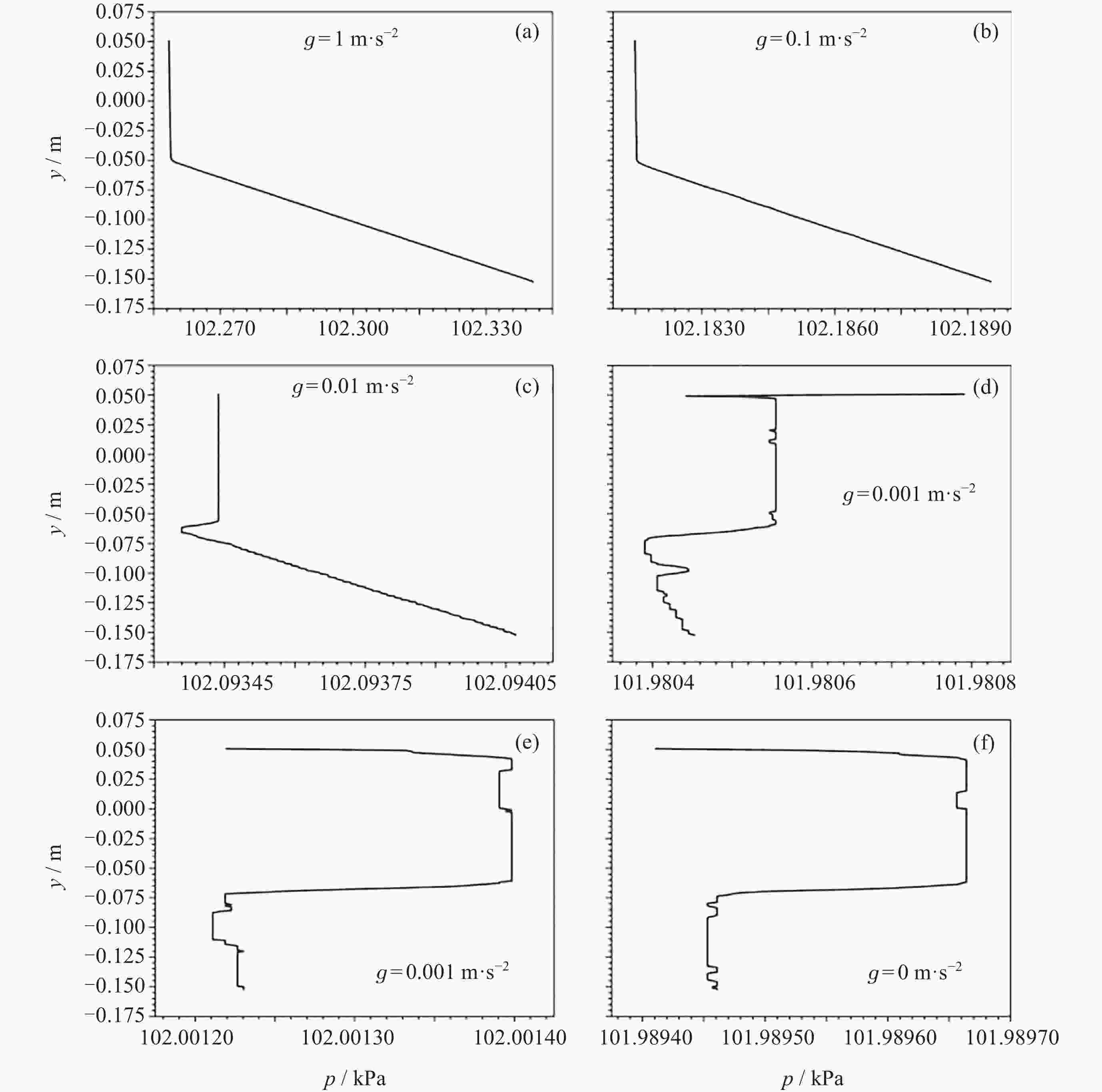 图  10  零重力下qw = 0.5 W⋅m–2时贮箱内流体压强随轴向位置的变化情况(t = 33.16 s)
